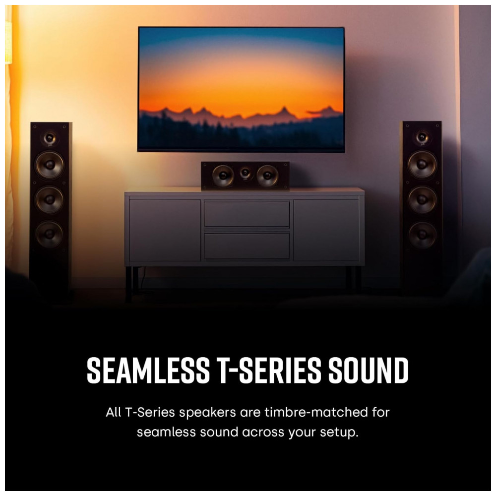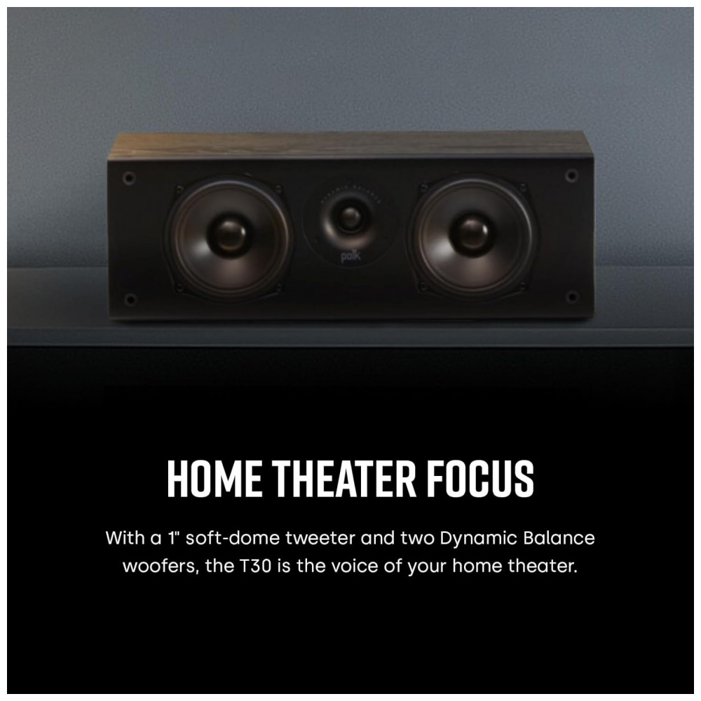 A Polk Audio T30 é uma caixa acústica central passiva para home theater, desenvolvida para reprodução clara de diálogos e vozes em sistemas de cinema em casa, mantendo bom equilíbrio de médios e graves. Ela utiliza dois woofers Dynamic Balance de 13,3 cm e um tweeter de 2,5 cm em domo macio, entregando faixa completa de áudio com boa definição em filmes, séries, músicas e jogos.