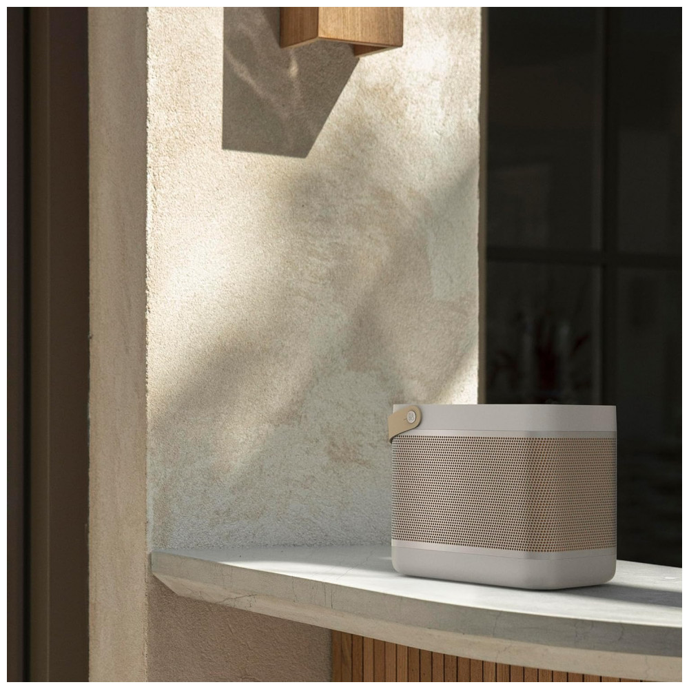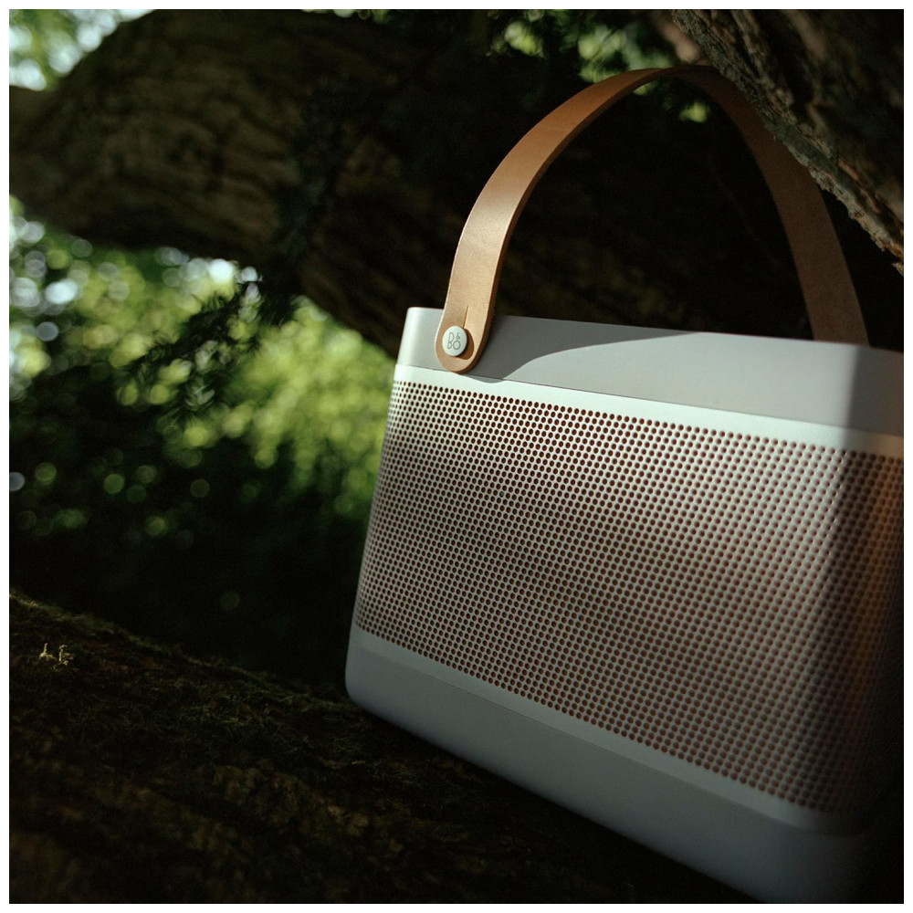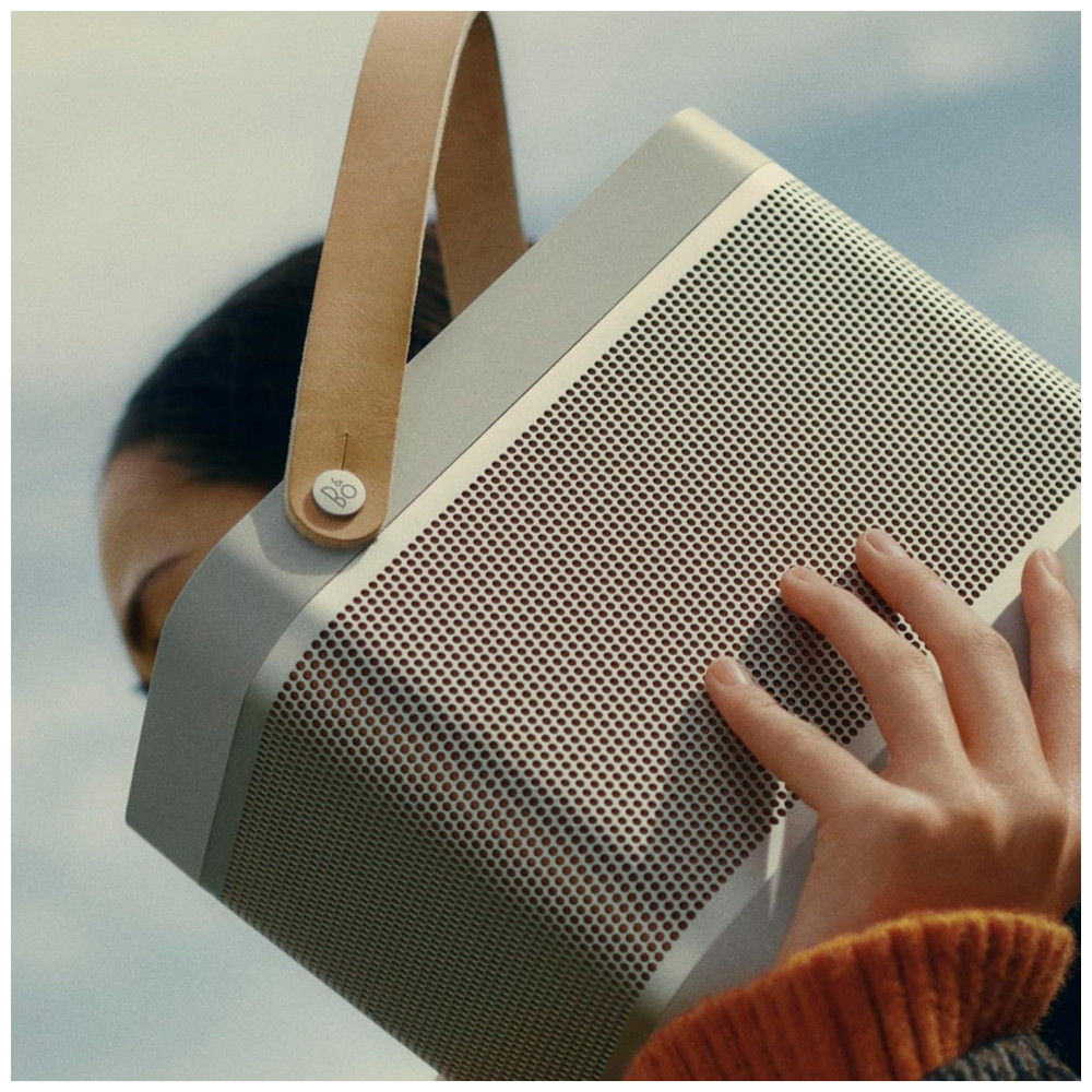 A Bang & Olufsen Beolit 20 cinza Grey Mist é uma caixa de som portátil premium, com design retangular de cantos arredondados, corpo em alumínio anodizado, base em polímero e alça em couro para facilitar o transporte. Visualmente, combina função e estética, funcionando tanto como peça de decoração quanto como sistema de áudio de alta qualidade em salas, escritórios, varandas cobertas e áreas sociais.