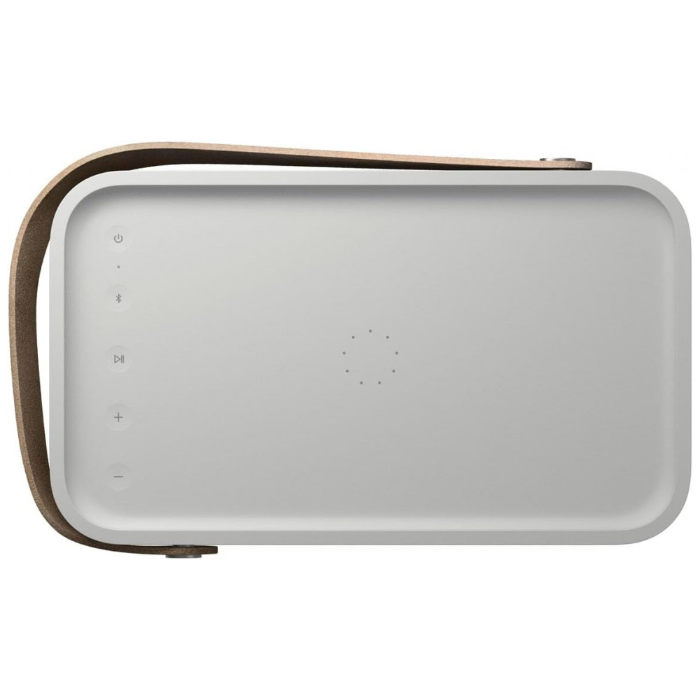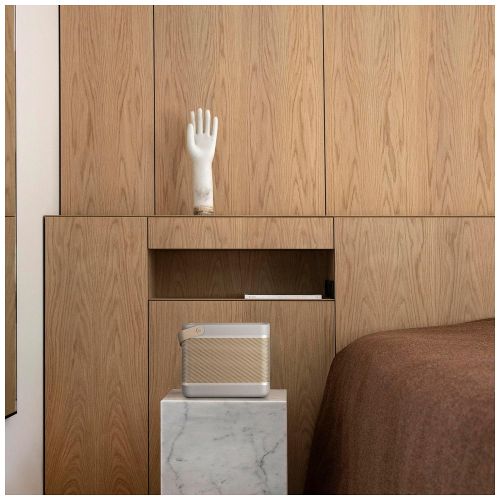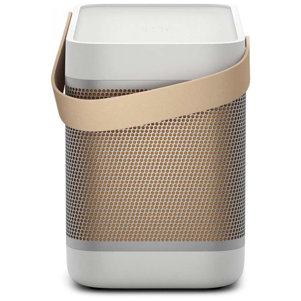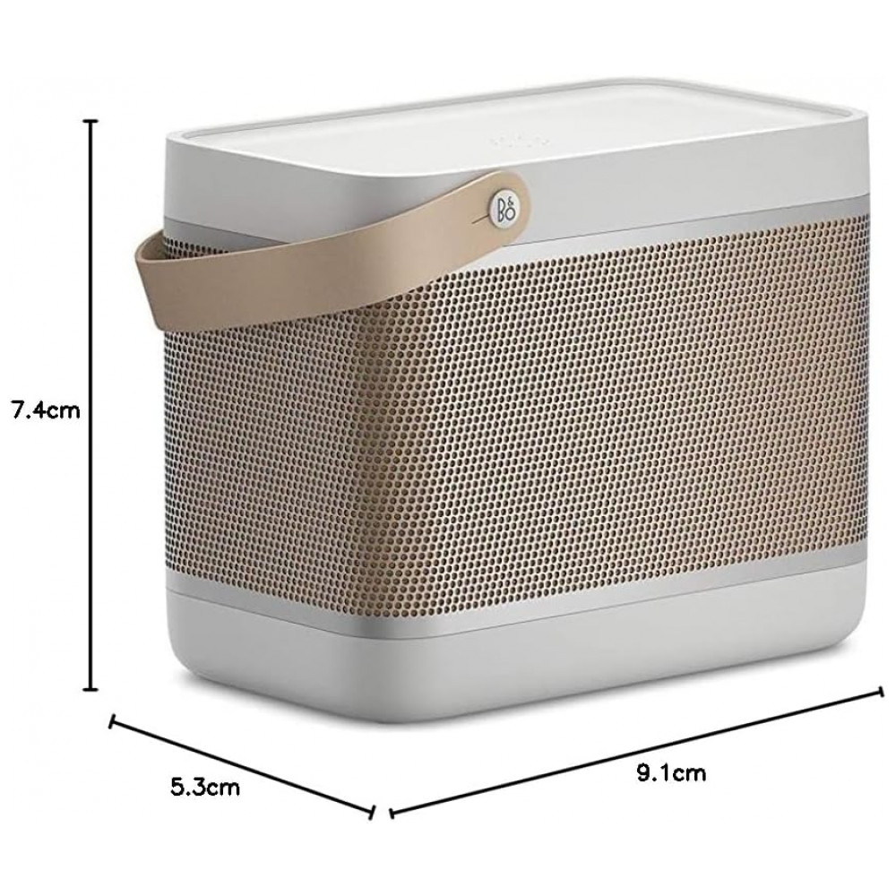 A Bang & Olufsen Beolit 20 cinza Grey Mist é uma caixa de som portátil premium, com design retangular de cantos arredondados, corpo em alumínio anodizado, base em polímero e alça em couro para facilitar o transporte. Visualmente, combina função e estética, funcionando tanto como peça de decoração quanto como sistema de áudio de alta qualidade em salas, escritórios, varandas cobertas e áreas sociais.