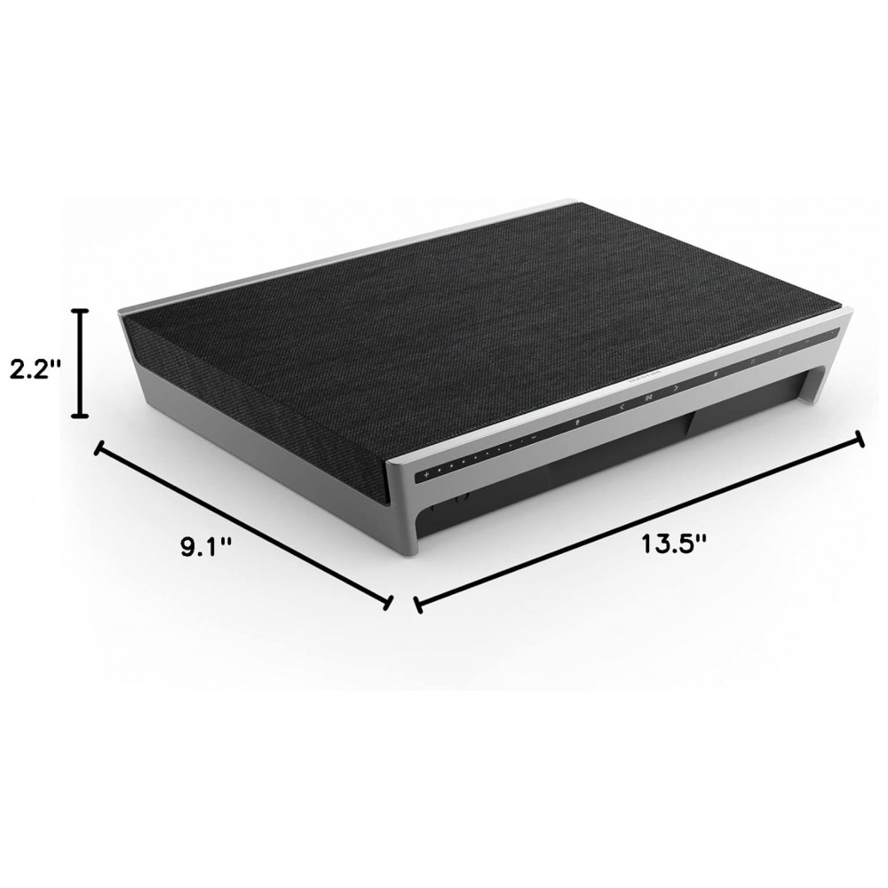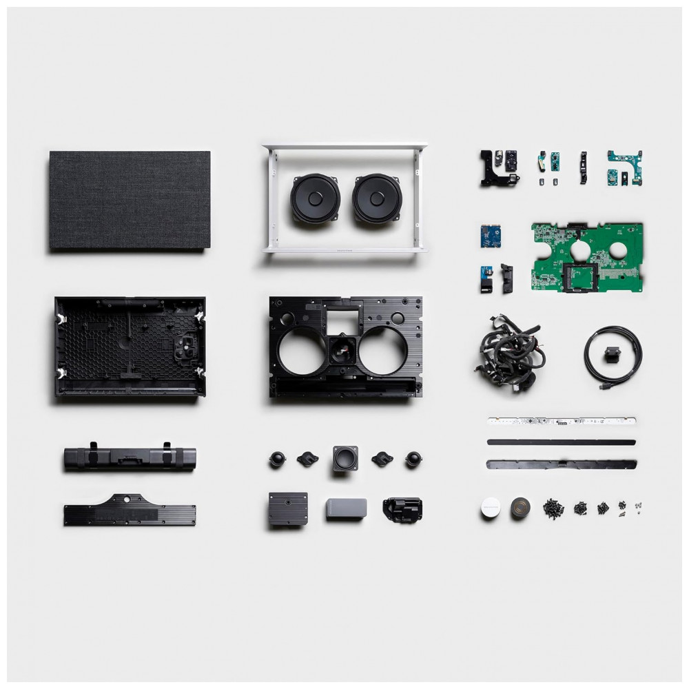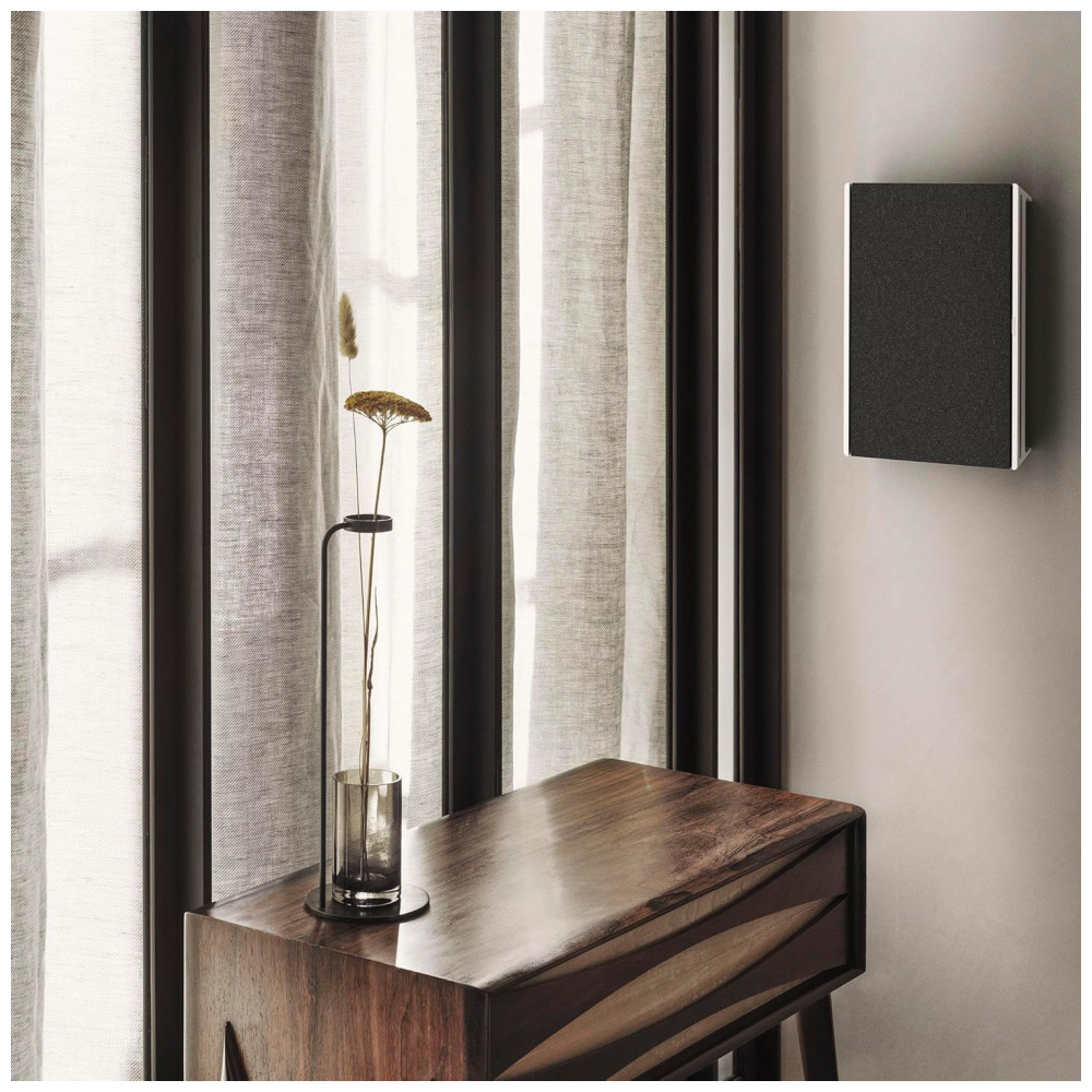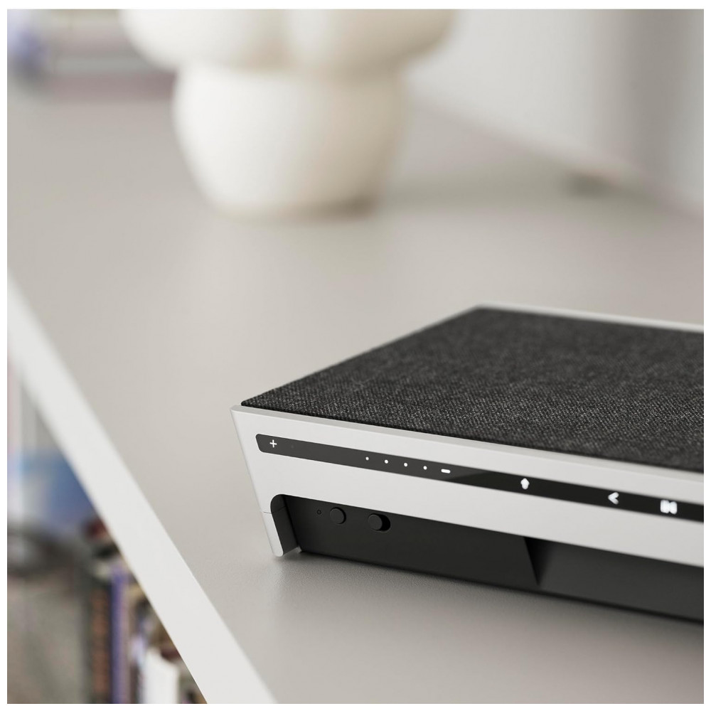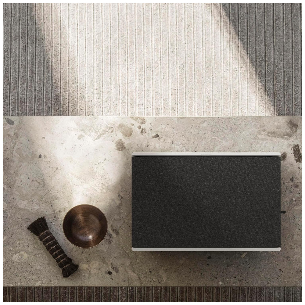 Recursos de áudio: Active Room Compensation, Adaptive Bass Linearization, posicionamento dependente de som (em pé, deitada ou na parede), equalização ajustável pelo aplicativo Bang & Olufsen