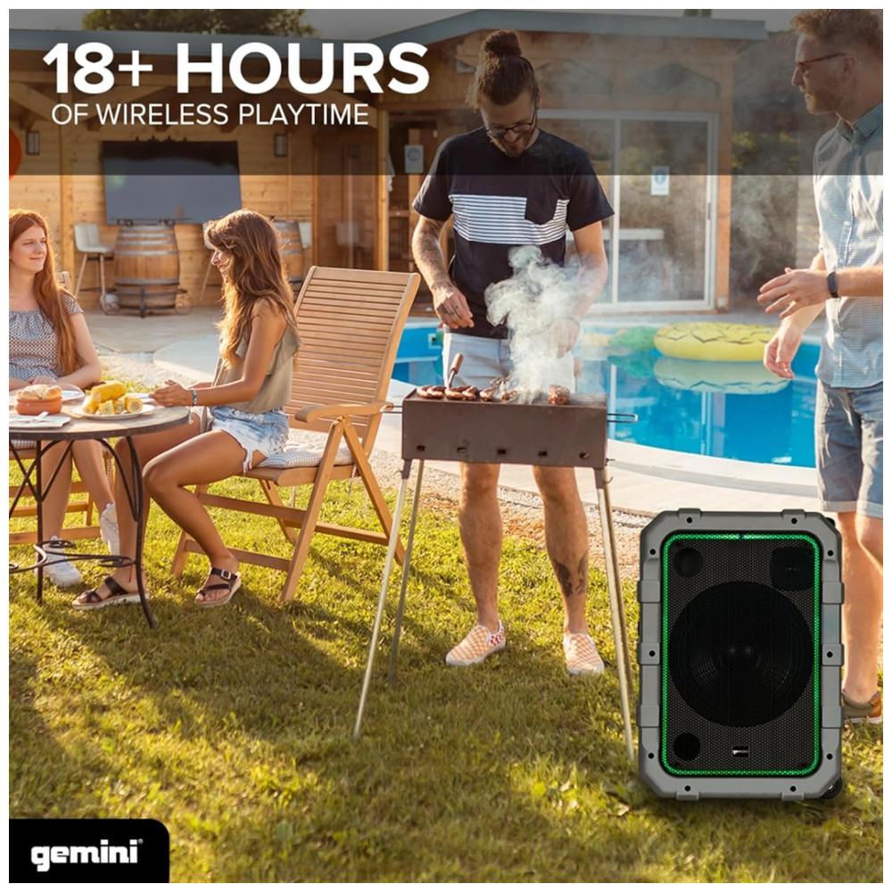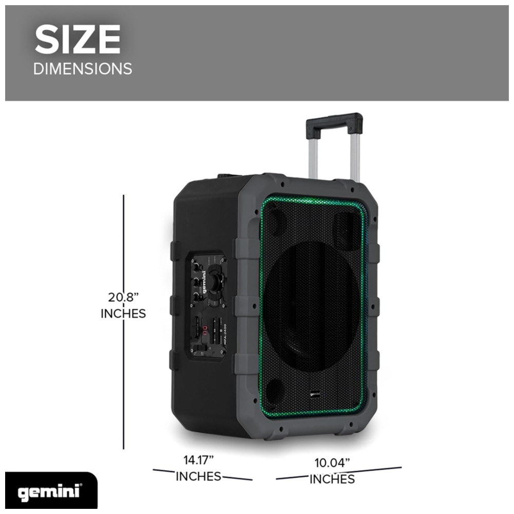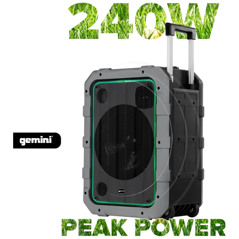 Caixa de Som sem Fio Portátil Bluetooth Recarregável com LED 6 Modos 240W GEMINI MPA 2400GRY Preto