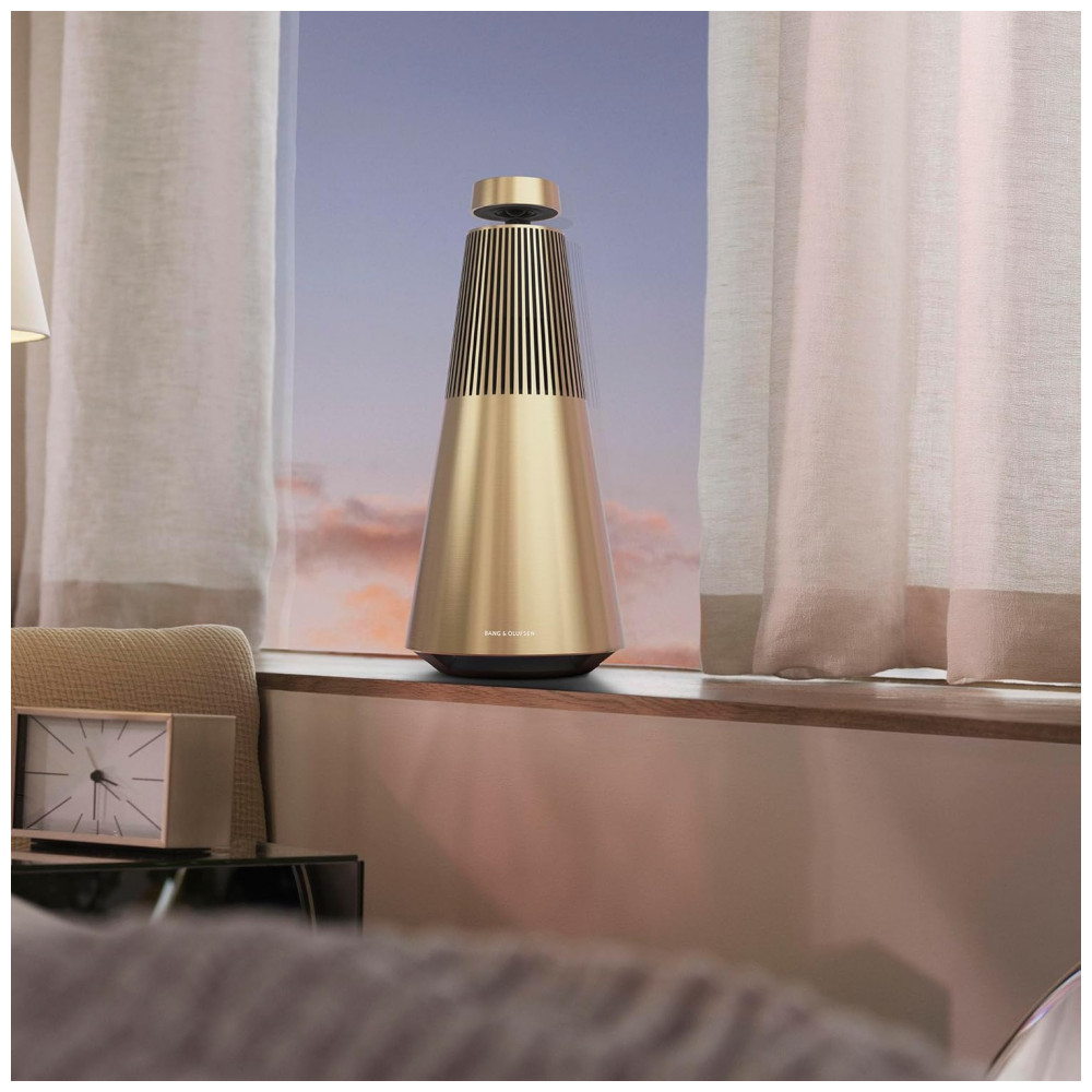 A Bang & Olufsen Beosound 2 3ª geração dourada é uma caixa de som Wi‑Fi de alto desempenho com design cônico em alumínio dourado, indicada para uso…