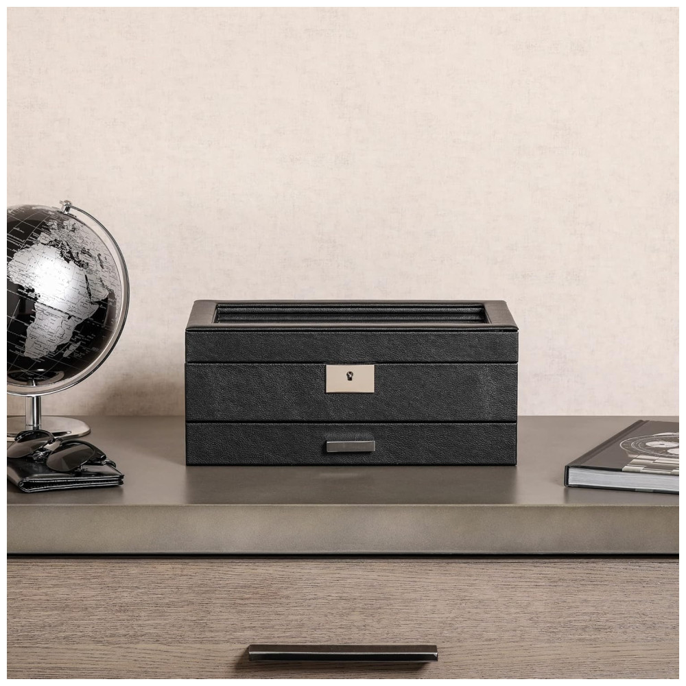 CONSTRUÍDO RESISTENTE, FORTE E ESTÁVEL Graças à qualidade de construção e durabilidade incomparáveis, nossa caixa de relógio atua como o gabinete ideal para abrigar sua preciosa coleção nos próximos anos.