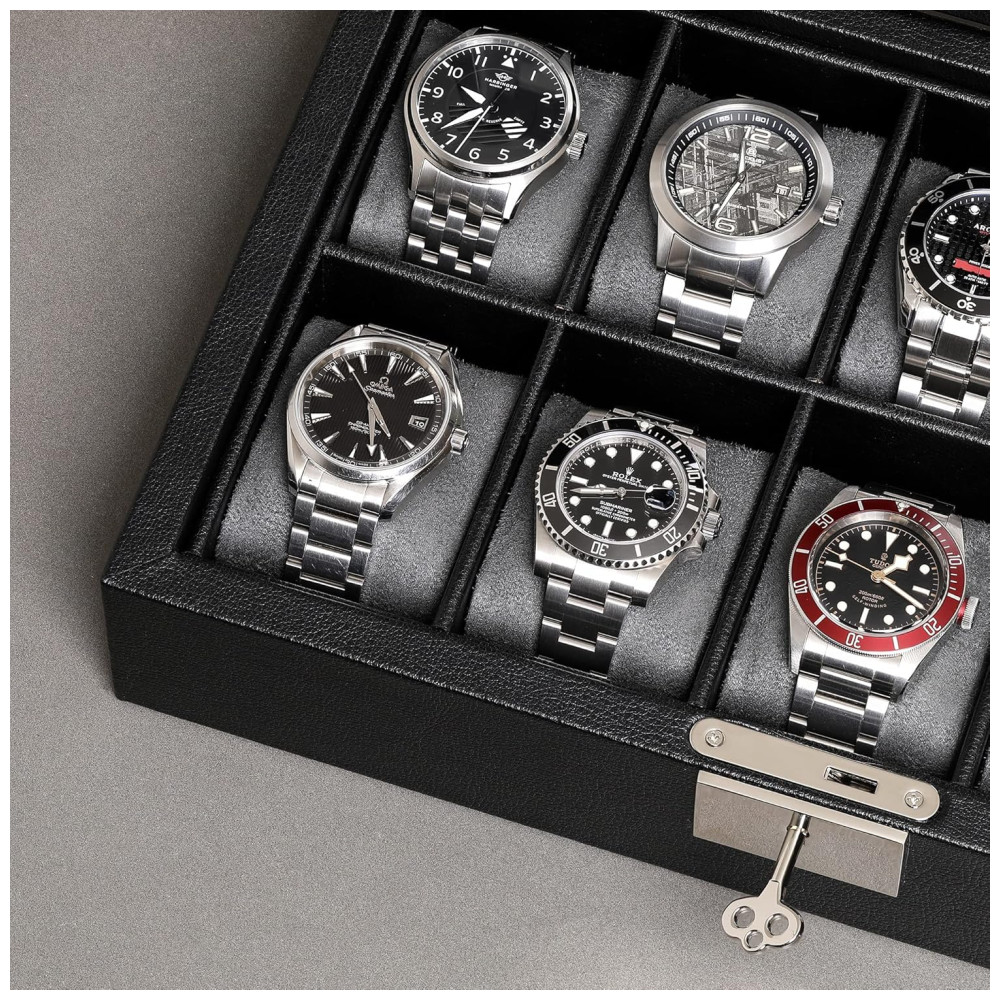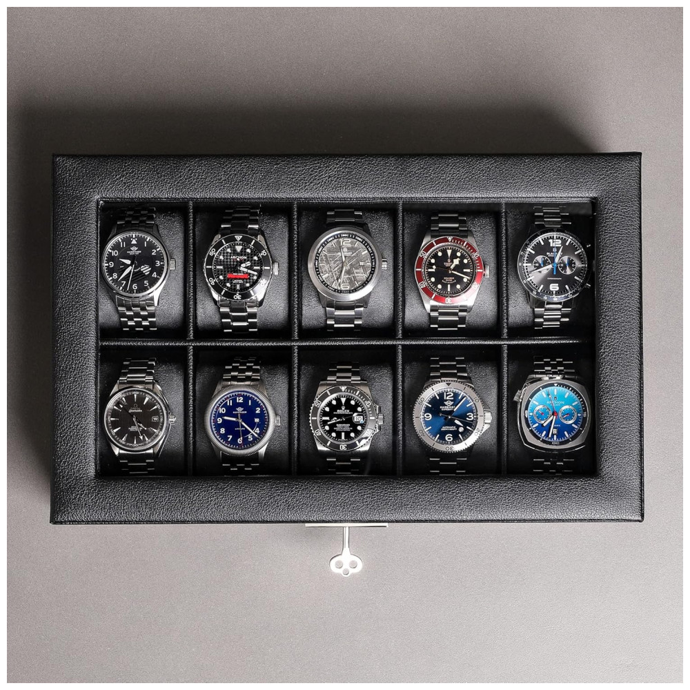 O PINÁCULO DO ZENAMENTO DE RELÓGIOS Nossa caixa de relógio masculina parece estilosa, elegante e mantém seus relógios com segurança, robustez e segurança. Exiba sua coleção de relógios caros com total e total confiança Nossa vitrine de vidro é a opção perfeita de zenamento e exibição para qualquer colecionador de relógios