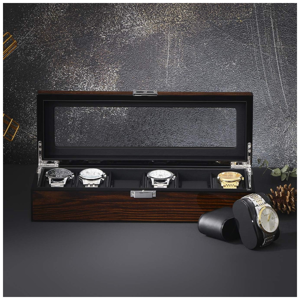UMA FANTÁSTICA CAIXA DE RELÓGIO PARA QUALQUER COLECIONADOR Estamos comprometidos com o mais alto nível de qualidade. Este porta relógio BEWISHOME é feito de MDF, o interior é coberto com couro sintético ultra suave, realça a beleza única enquanto protege os relógios de arranhões. Não importa o quão exigente seja um homem, ele pode sentir que é único. zene, exiba e proteja seus valiosos relógios de pulso com nossa elegante caixa de relógio.