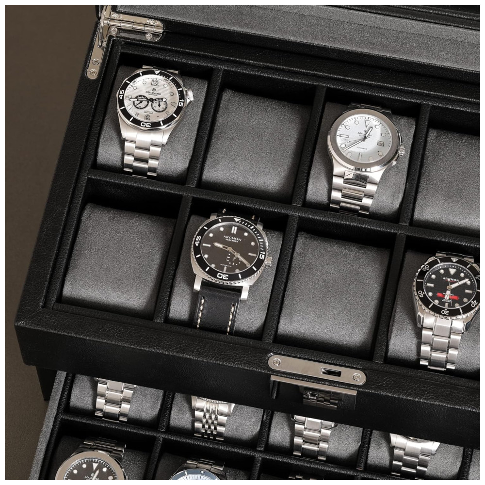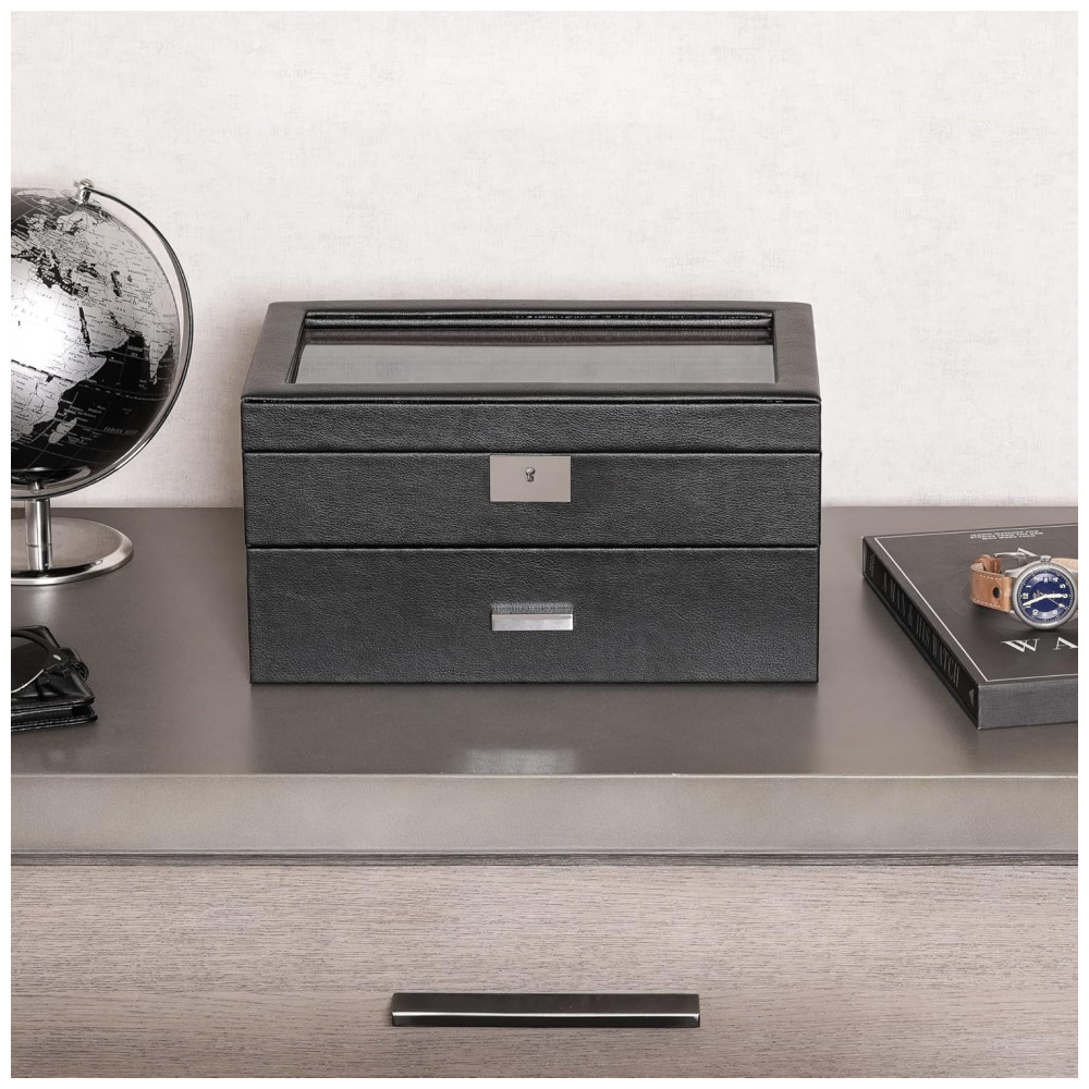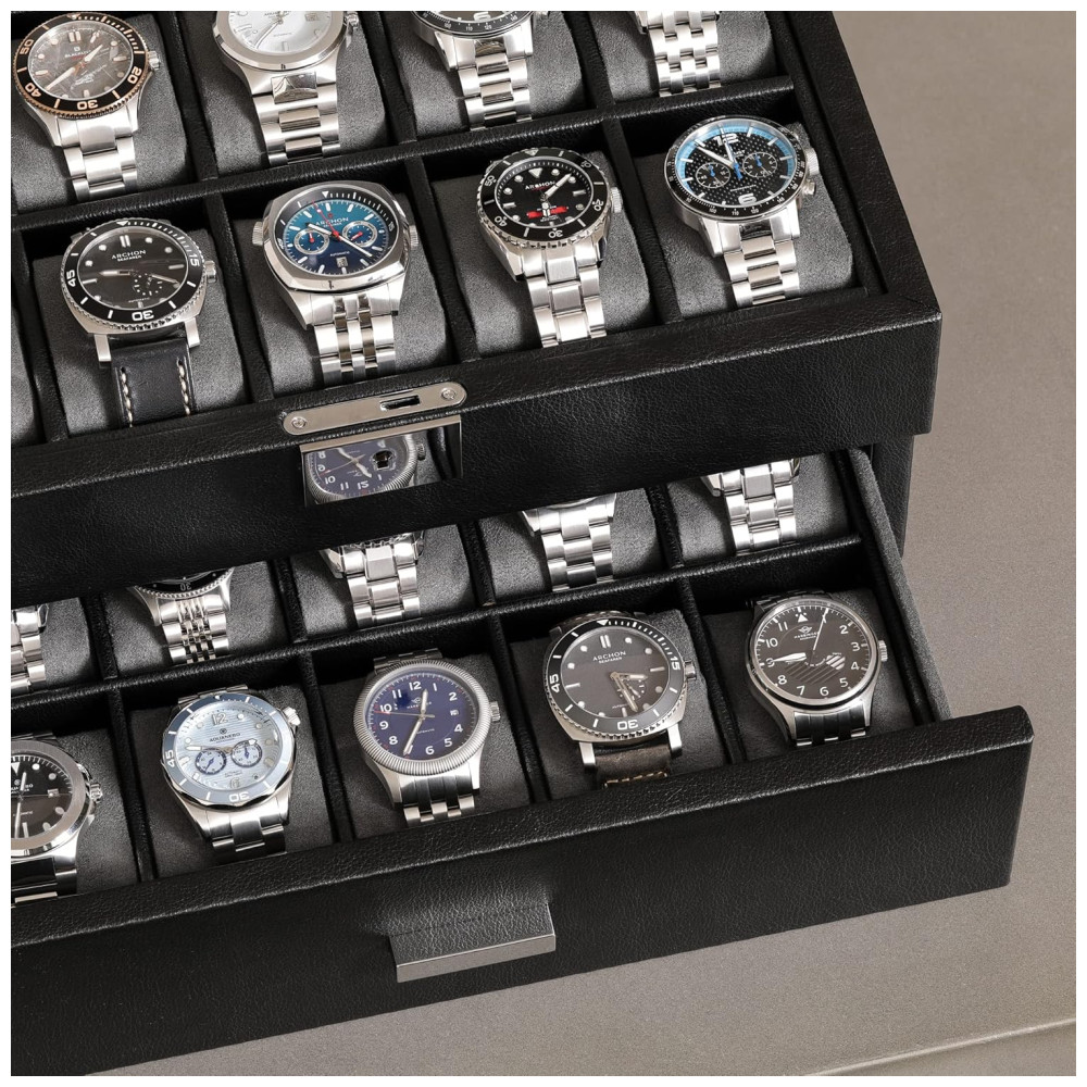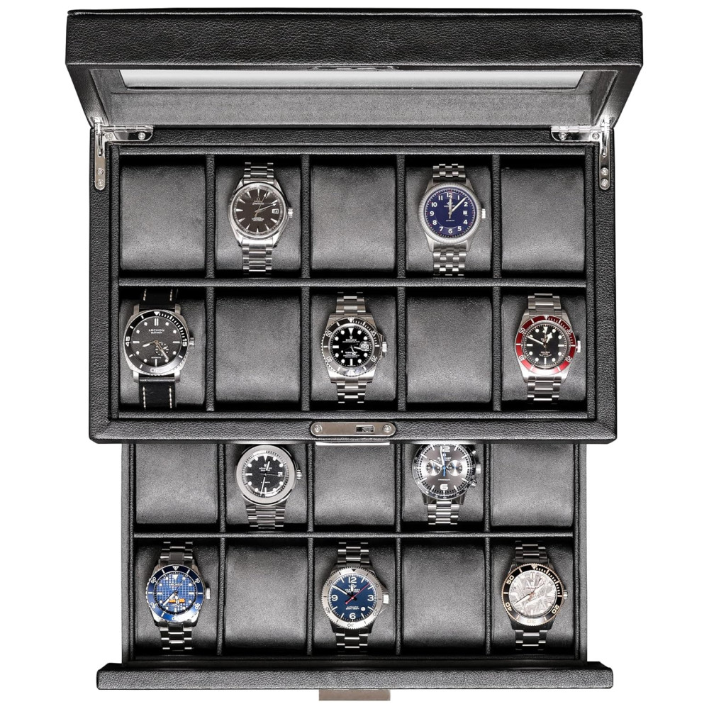 Caixa Estojo de Couro para Relógios com 20 Compartimentos ROTHWELL Preto e Cinza