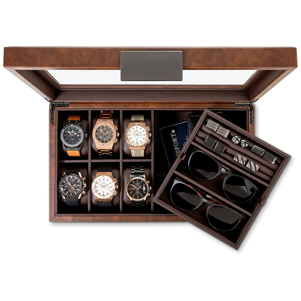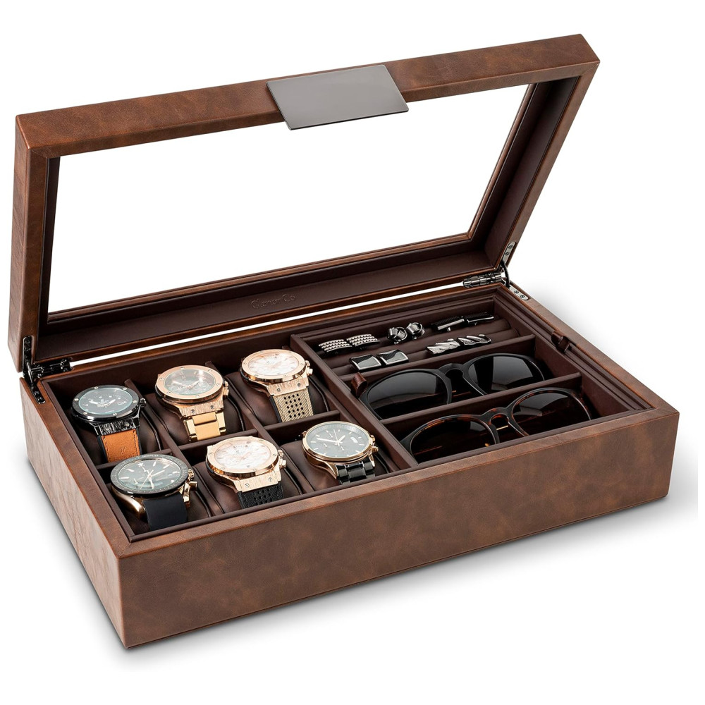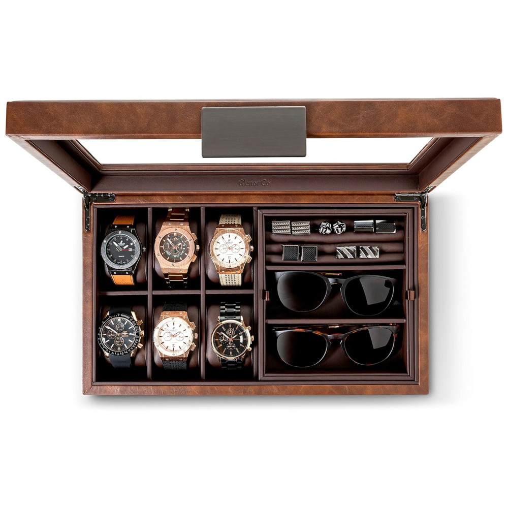 Caixa Estojo de Couro para Relógios com 6 Compartimentos Glenor Co Marrom