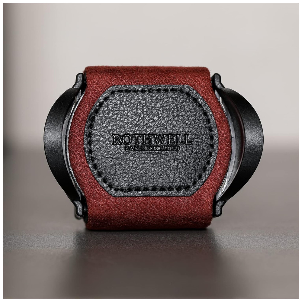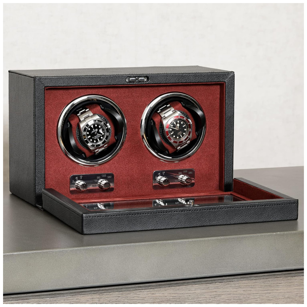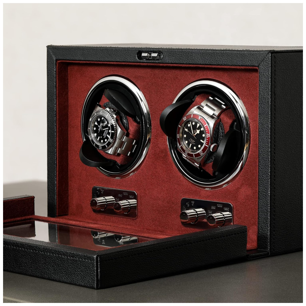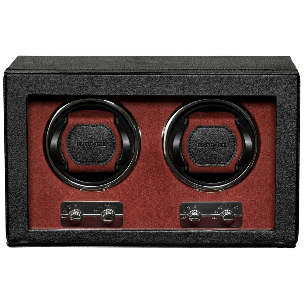 Caixa Estojo de Couro Rotativo Automático para Relógios 2 Lugares ROTHWEL Preto e Vermelho
