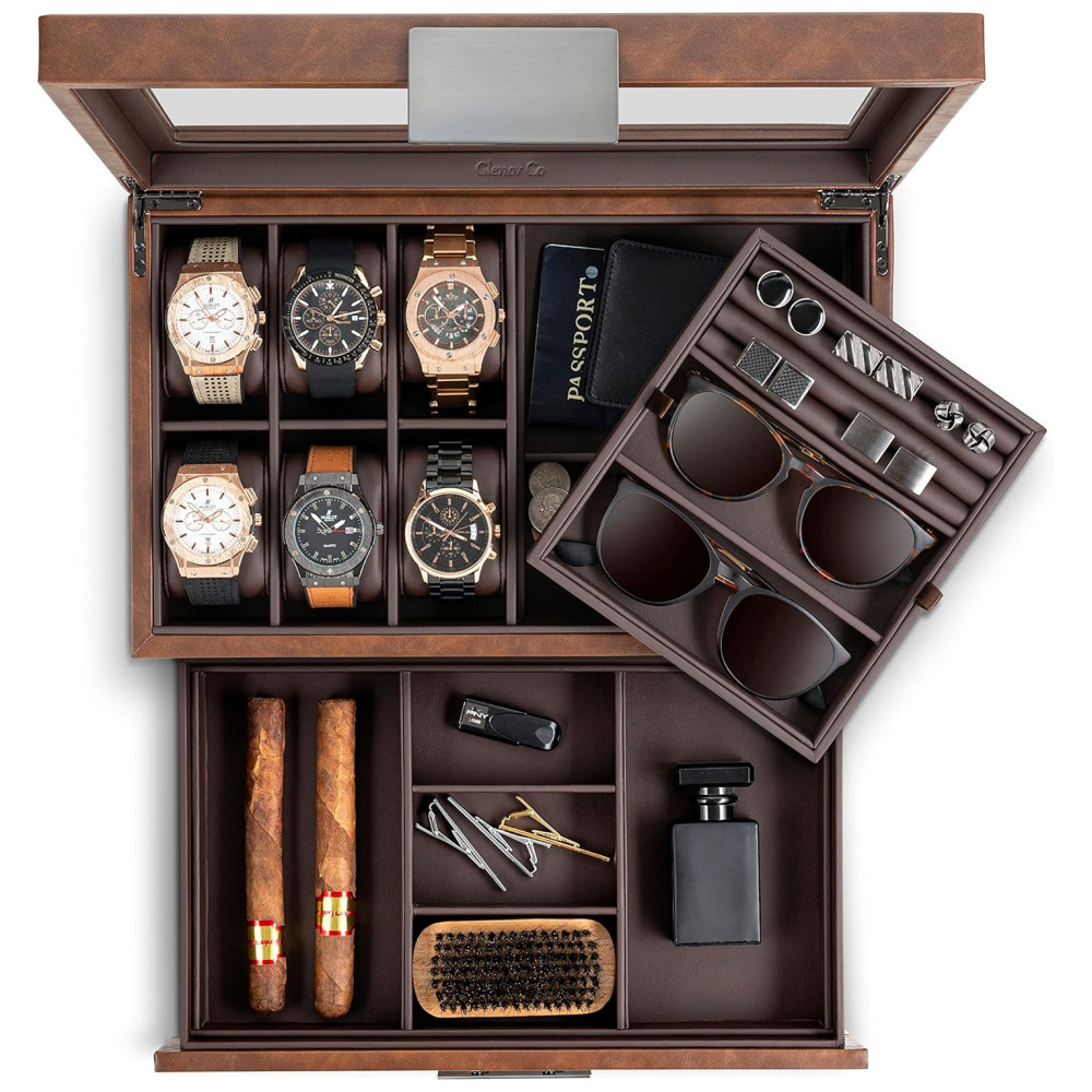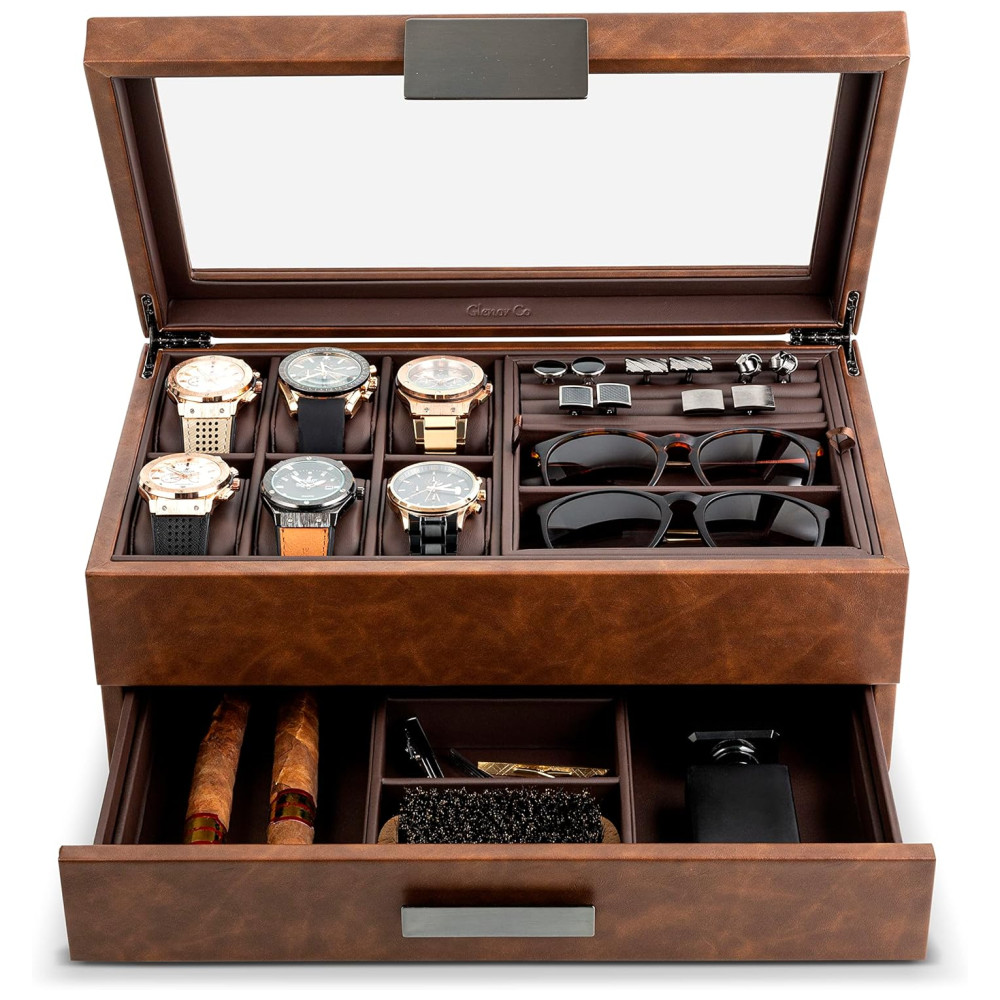 SEJA O PRESENTE MAIS ORGULHOSO Esta caixa de joias Glenor Co Valet é tão elegante e luxuosa que você se sentirá tão orgulhoso de dar de presente em qualquer ocasião. É um prazer definitivo. Também já vem embalado em uma elegante caixa de presente e inclui um cartão em branco, tudo pronto para presentear. Este é um presente maravilhoso para um pai, namorado, marido, filho, colega, amigo ou qualquer outro homem especial em sua vida