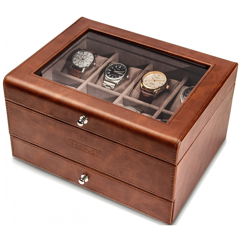 Caixa Estojo de Madeira para Relógios com 8 Compartimentos Beerust Marrom