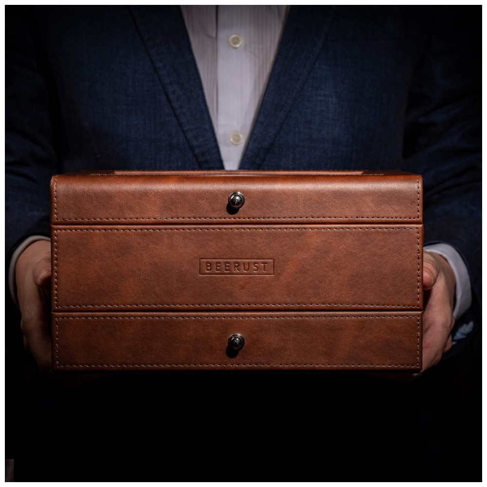 A MELHOR CAIXA DE RELÓGIO DE COURO esta caixa de relógio e caixa de joias masculina é feita de madeira e coberta com couro sintético de alta qualidade de uma linda cor marrom. É feito à mão com especial cuidado nos acabamentos.