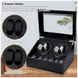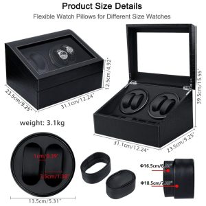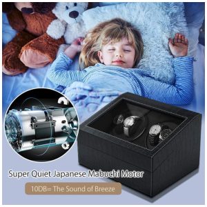 .Motor extremamente silenciosoA caixa automática do enrolador de relógio possui 2 motores acústicos baixos, com ruído de até 10 db e para girar seus relógios de forma silenciosa e segura, que prolongam a vida útil do relógio, gire seus relógios para não causar danos ao seu relógios automáticos caros devido à magnetização.