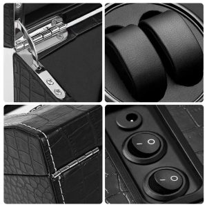 .Material Premium Nosso enrolador de relógio automático com luxuosa pele de crocodilo PU para preservar toda a sua peça de relógio atemporal. Watch Winder design compacto e refinado, interior macio foi aplicado para proteger seu relógio e evitar arranhões.