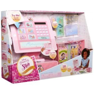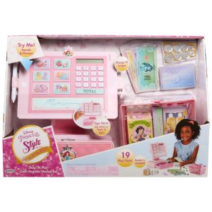 Desfrute de uma experiência de compra única e estilosa com a Disney Princess Style Collection Shop N Play Cash Register Set. Eleve suas brincadeiras a um nível fabuloso e divirta se explorando o mundo da moda e empreendedorismo.