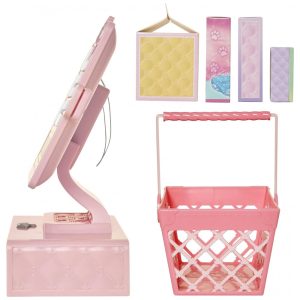 Chegou a hora de explorar o conjunto de caixas registradoras Shop N Play. Com um design elegante, muitas peças de jogo, sons realistas e frases da caixa registradora, esta experiência de compra eleva o mundano ao fabuloso. Torne suas compras mais glamorosas com este conjunto encantador.