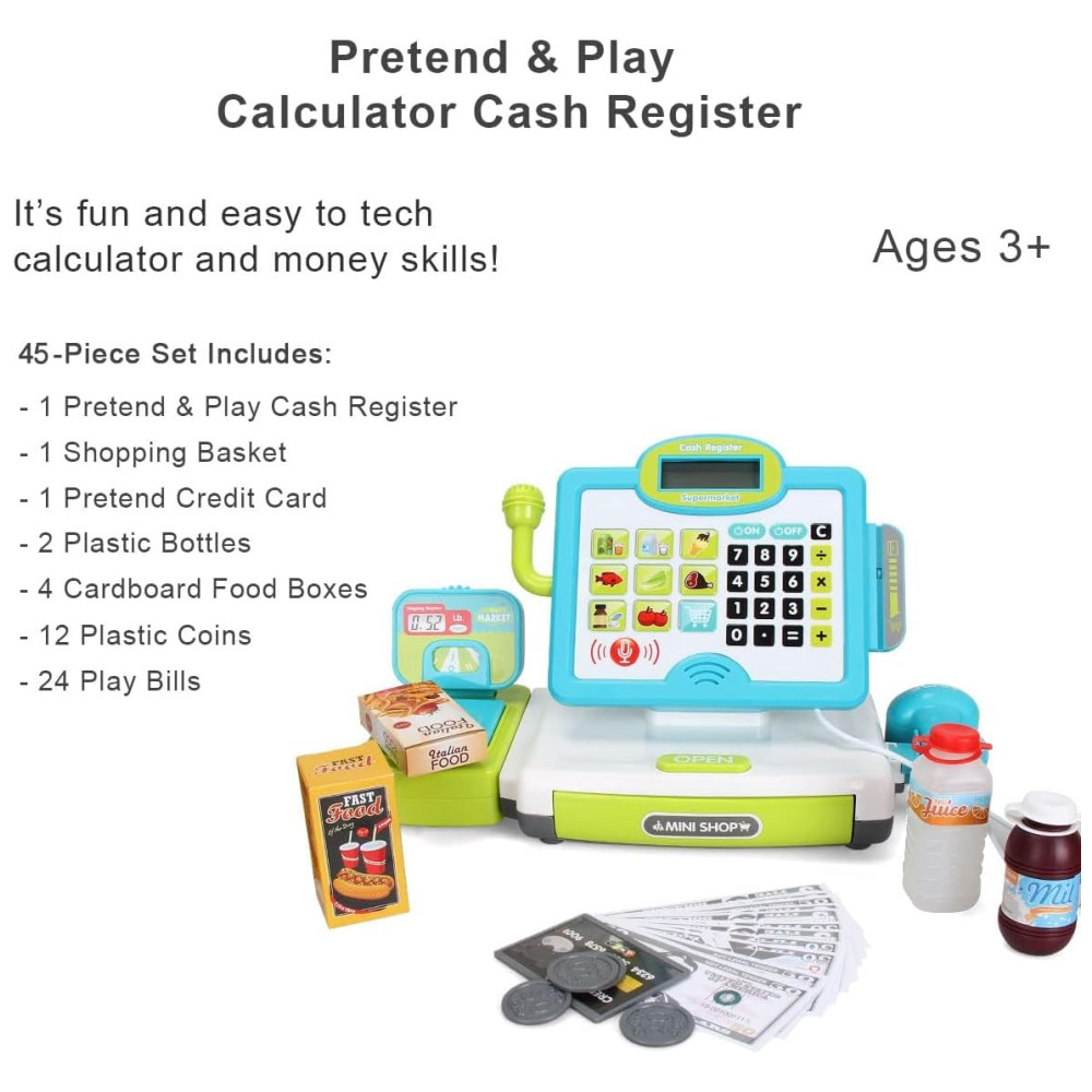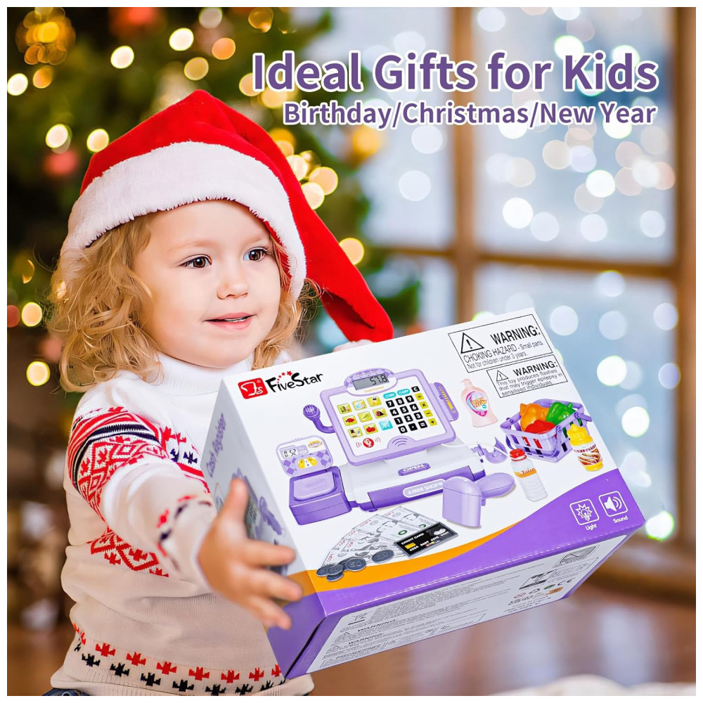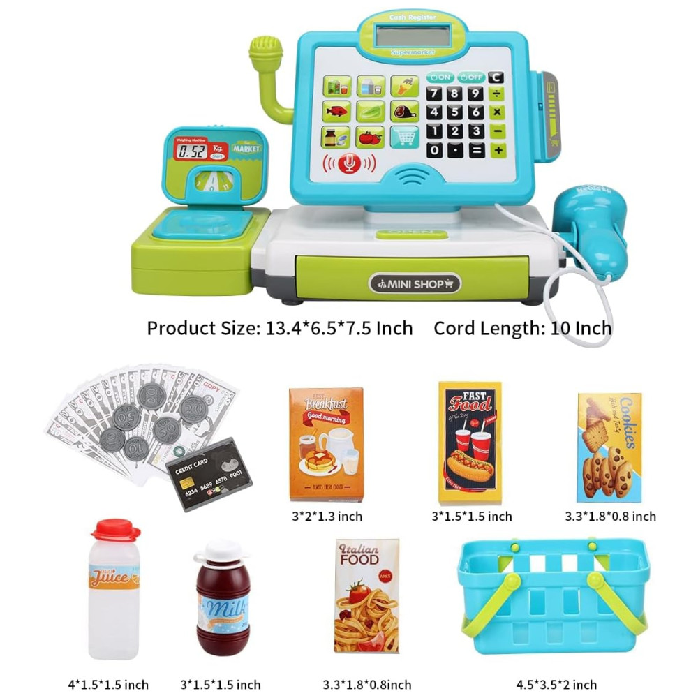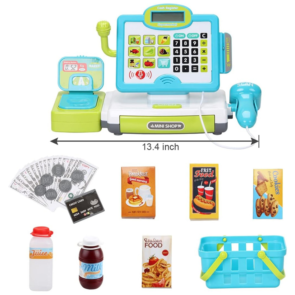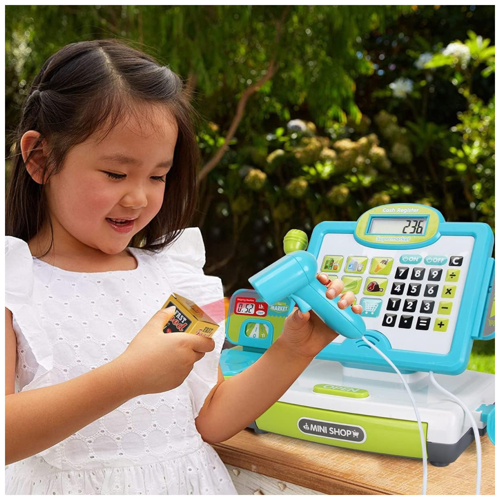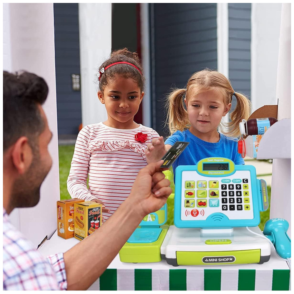 Caixa Registradora FS 45 Peças com Scanner Microfone e Alimentos para Crianças 3-7 Anos