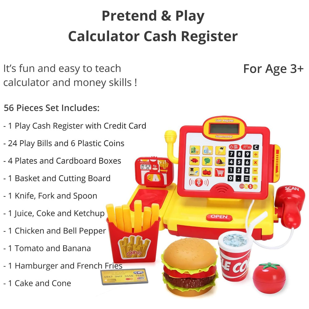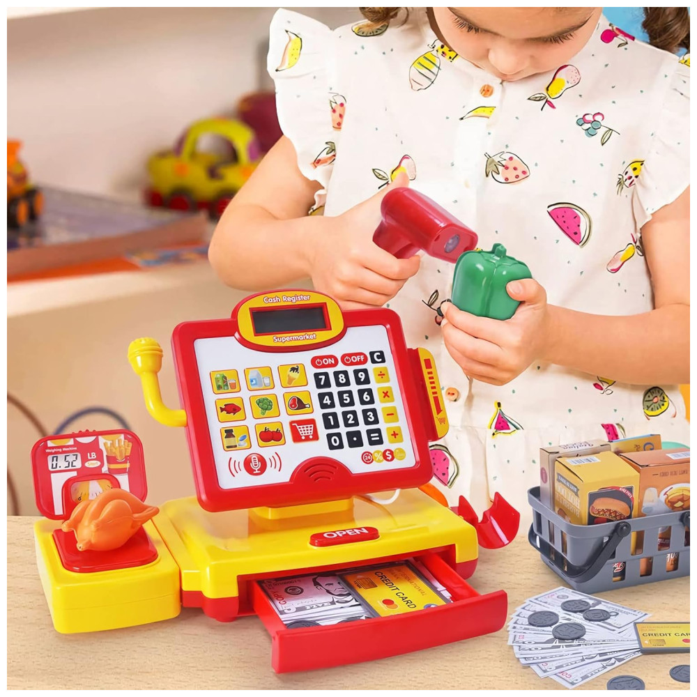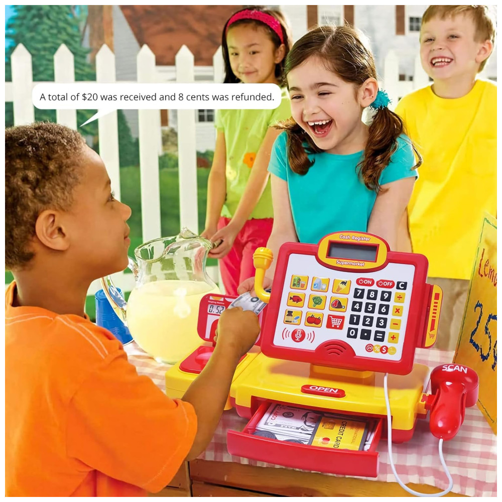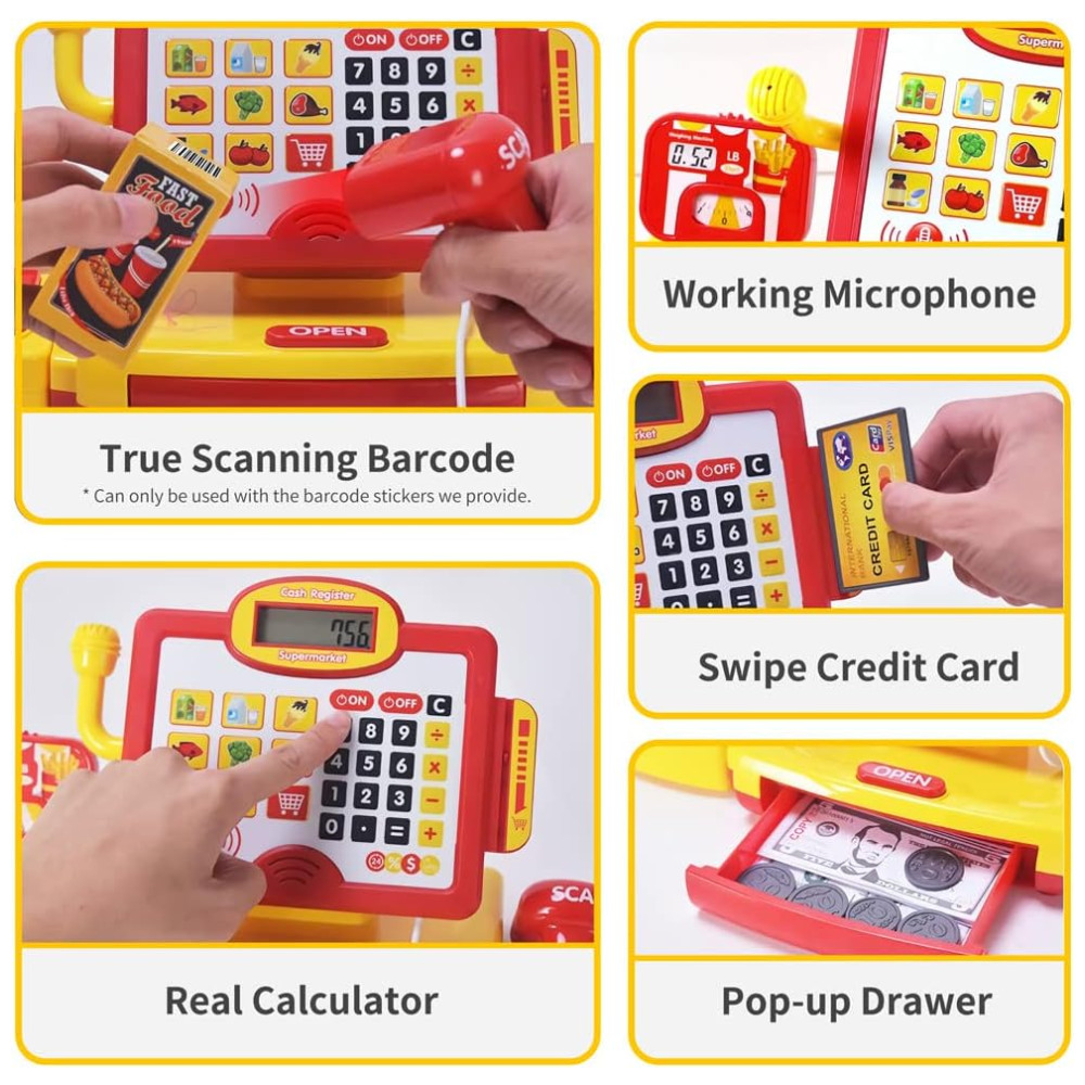 Caixa Registradora FS com Leitor de Código Calculadora e Microfone para Crianças 3-8 Anos