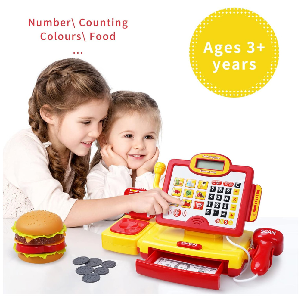 Caixa Registradora FS com Leitor de Código de Barras e Cartão para Crianças 3-5 Anos