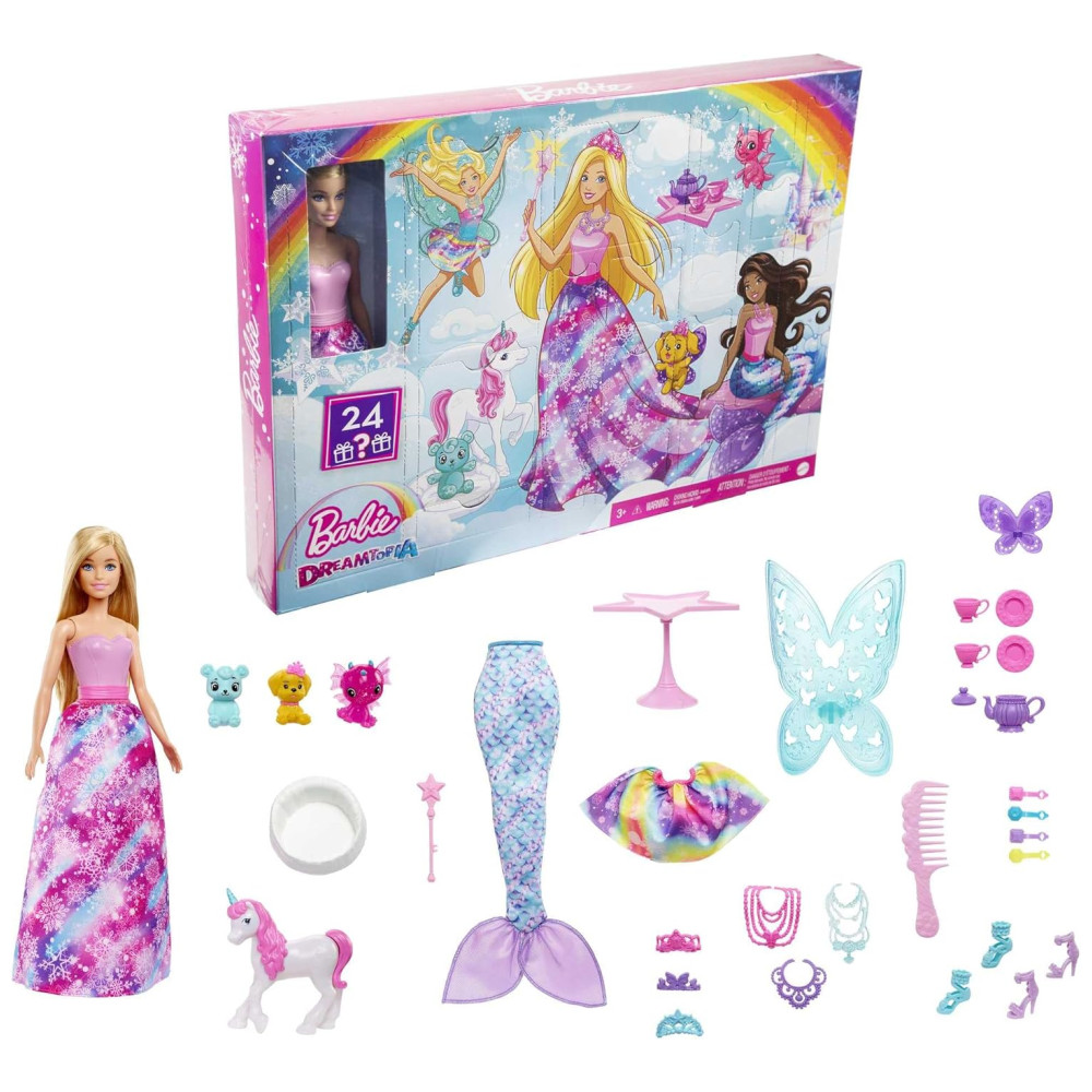 Depois de descobrir a boneca Barbie, mistérios encantadores o aguardam Explore as surpresas fascinantes abrindo 24 presentes que podem ser roupinhas de boneca, um acessório ou peça para contar histórias