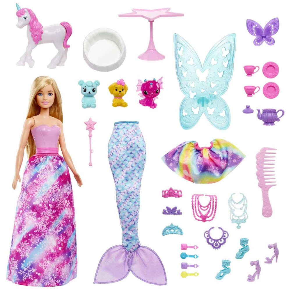 Esta caixa surpresa de conto de fadas da Barbie encantará as crianças com uma boneca Barbie e 24 presentes para uma experiência mágica de desempacotamento