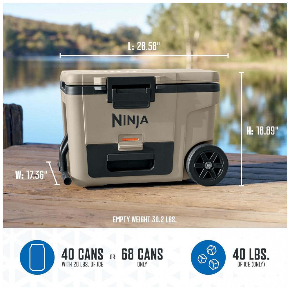 Caixa Térmica com Rodas Ninja FrostVault 42 L Bege Gaveta Dry Zone Isolada