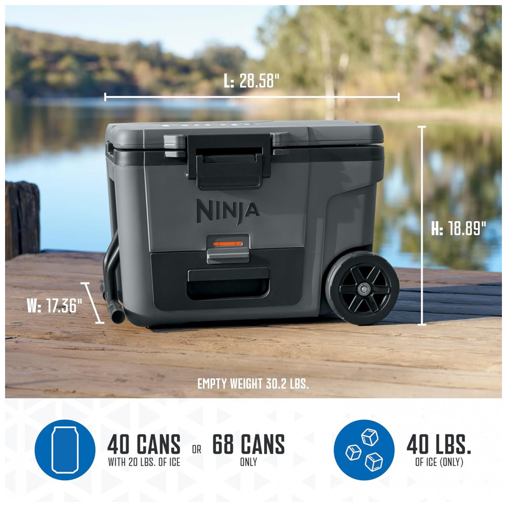 Caixa Térmica com Rodas Ninja FrostVault 42 L Cinza Gaveta Dry Zone Isolada