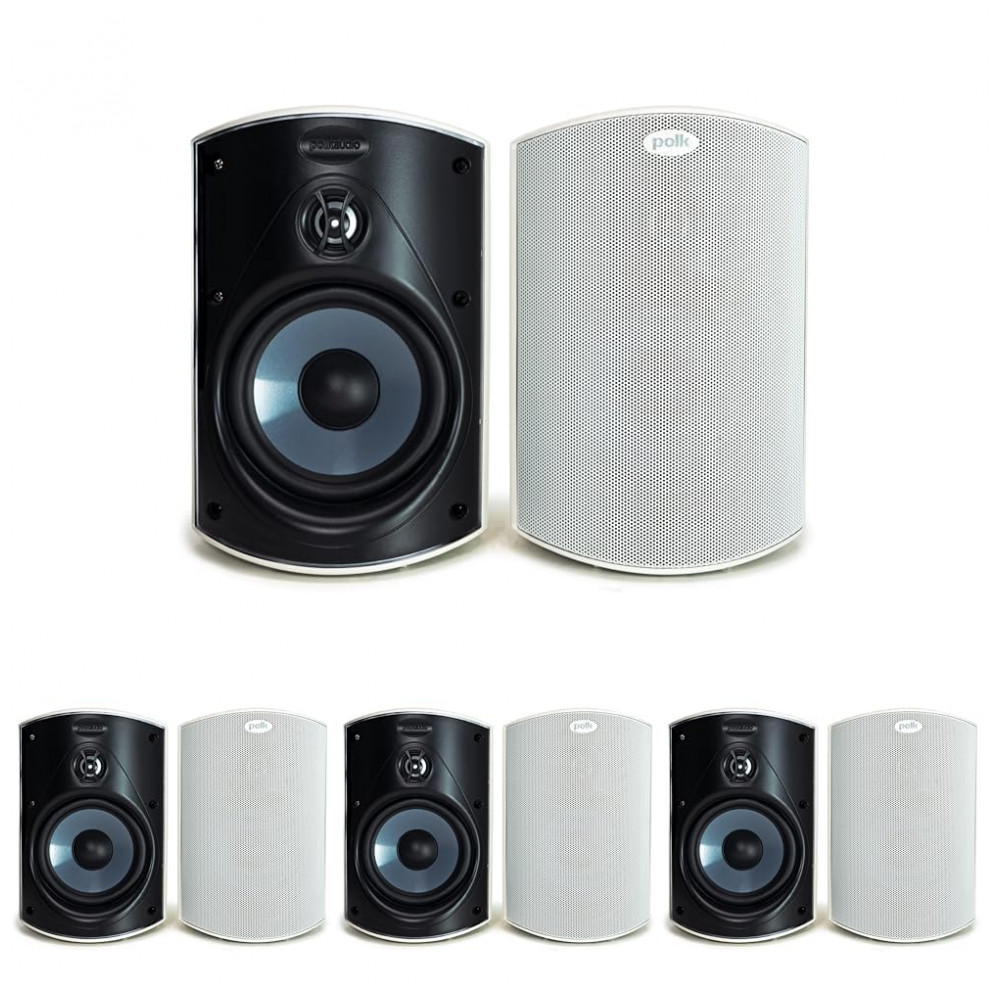 Caixas de som externas Polk Audio Atrium 4 brancas par all‑weather compacto com woofer de 114 cm e suporte Speed‑Lock kit com 4 pares