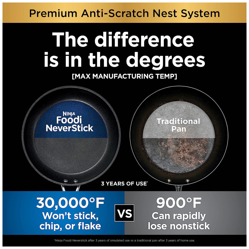 AQUECES MESMO O design durável em alumínio forjado permite uma distribuição rápida e uniforme do calor para obter resultados perfeitos todas as vezes. Feito com 30 mais alumínio que a série Ninja Foodi NeverStick Essential C100.