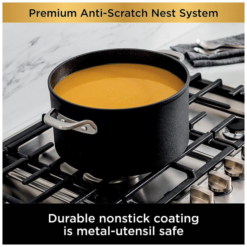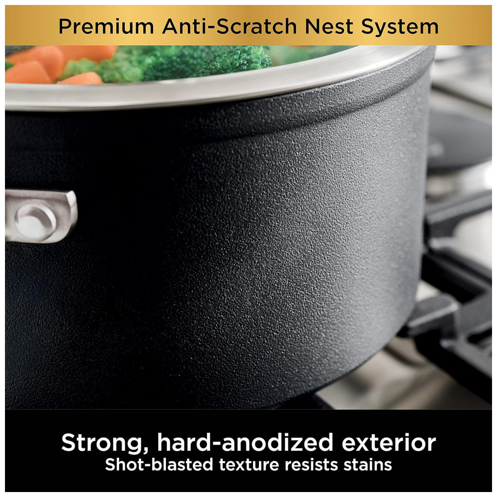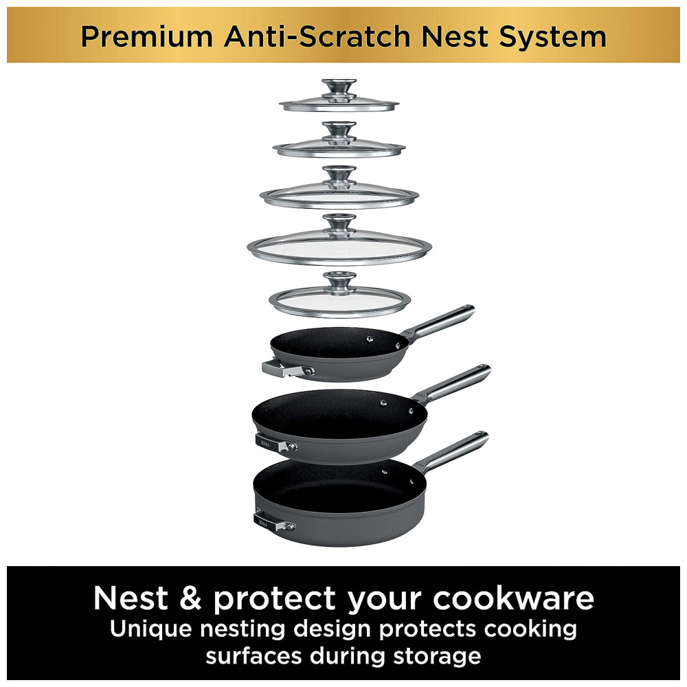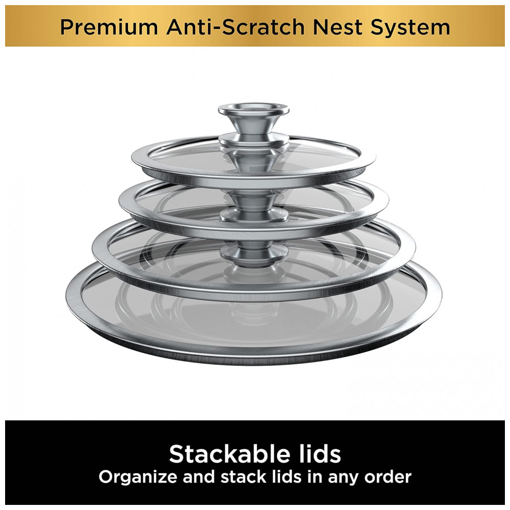 PASSEIO CONVENIENTE A cozinha de nidificação ajuda a manter sua cozinha organizada e acessível. Com este sistema conveniente, panelas, frigideiras e até tampas são facilmente empilhadas à medida que você constrói sua variedade.