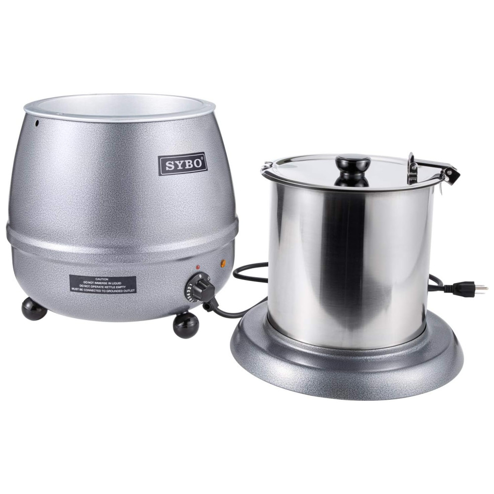 Caldeirão Elétrico Profissional para Sopa 10 Litros com Controle de Temperatura em Aço Inoxidável 110V 400W SYBO Prata