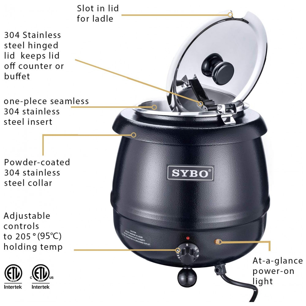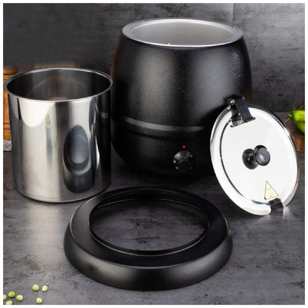 Caldeirão Elétrico Profissional para Sopa 10 Litros com Controle de Temperatura em Aço Inoxidável 110V 400W SYBO Preto