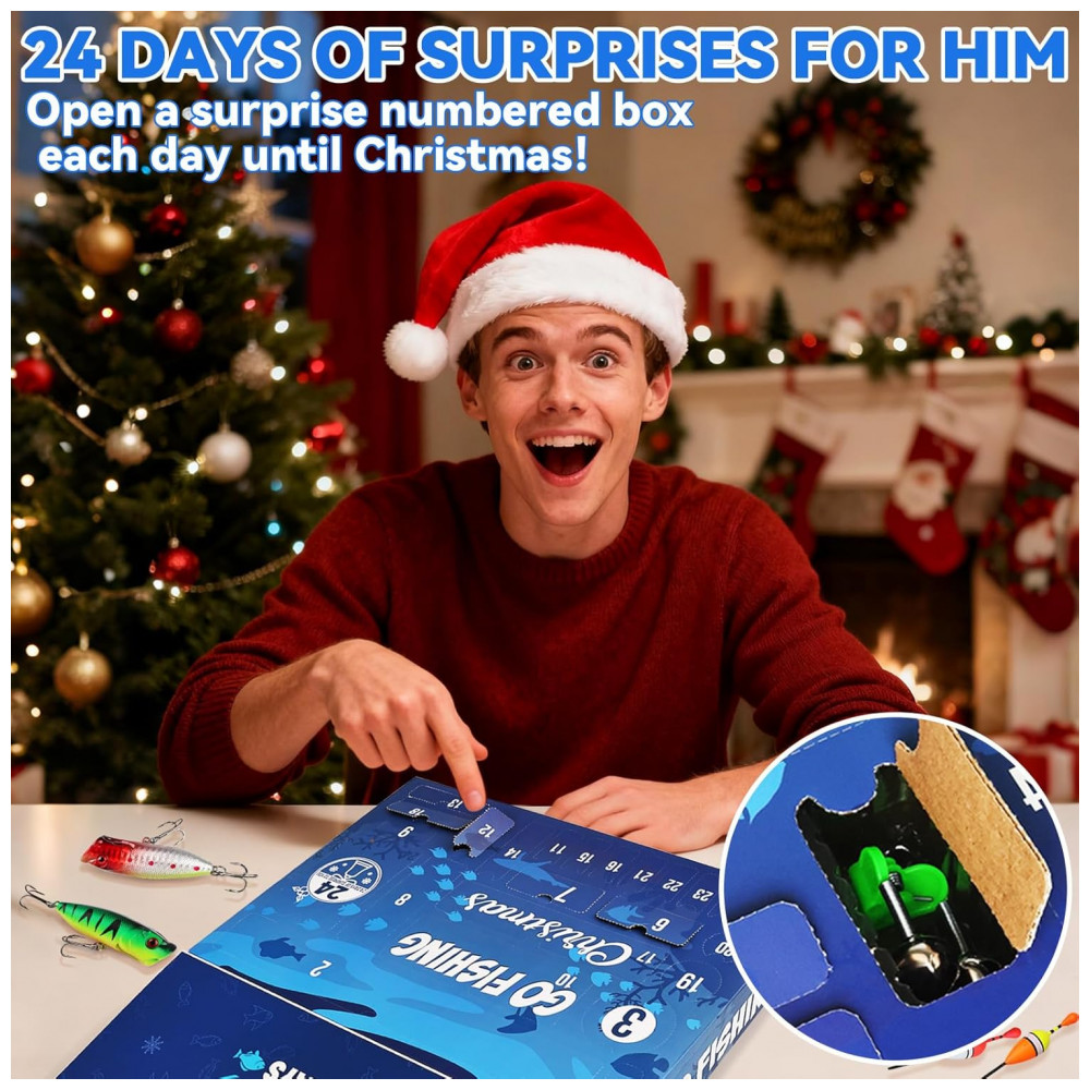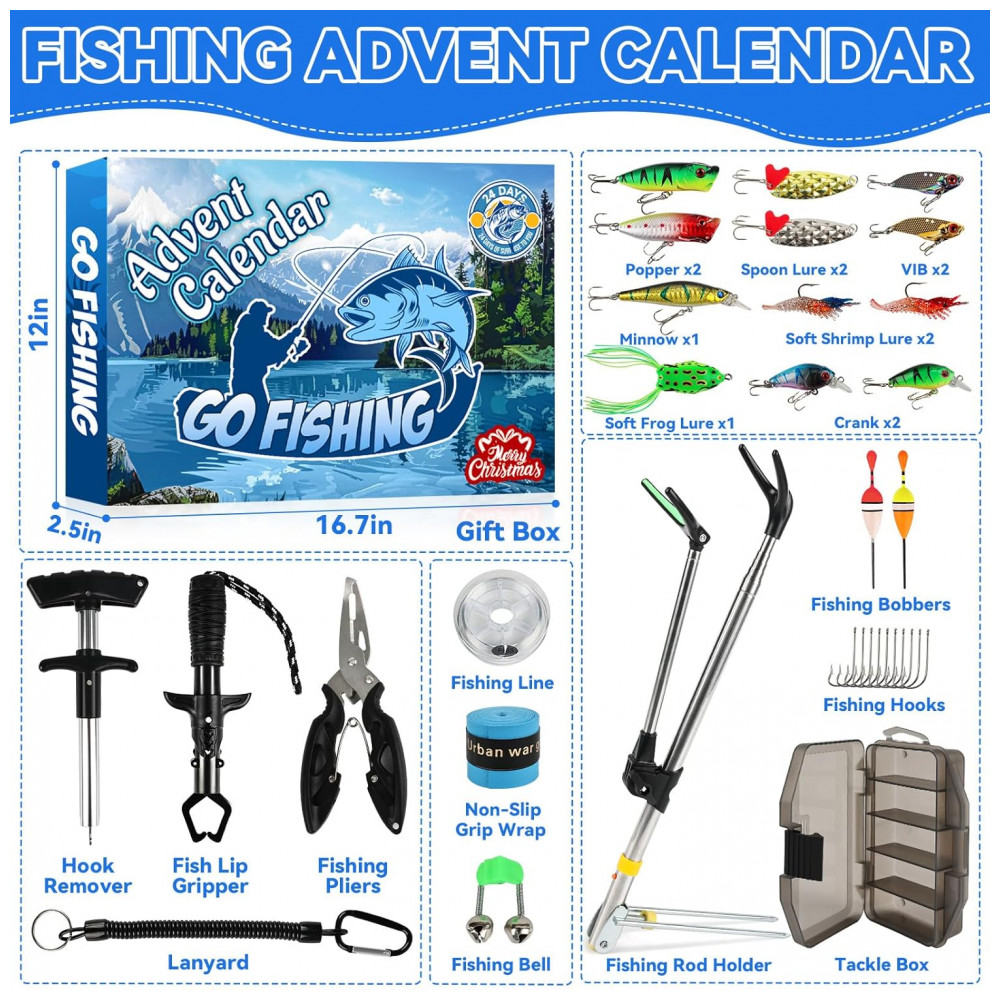 Calendário de Advento de Pesca 2025 para Homens Adultos e Adolescentes Kit de Acessórios de PescaEinailvk