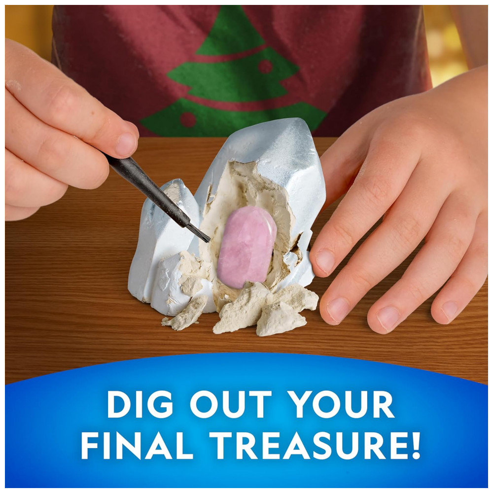 DIG OUT A SPECIAL CRYSTAL ON THE FINAL DAY A peça final desta coleção é um impressionante quartzo rosa que as crianças descobrem de um tijolo de mini escavação, assim como um geólogo de verdade