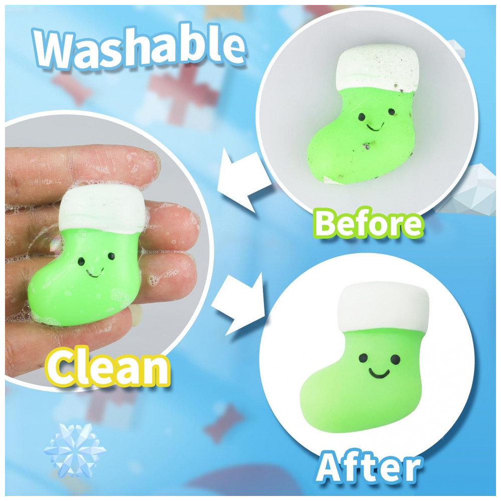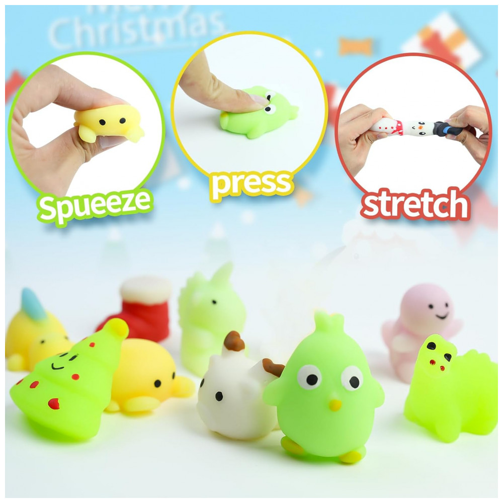 O Calendário de Contagem Regressiva de Natal por 24 dias simboliza uma contagem regressiva de 24 dias, onde meninas e meninos abrem uma porta a cada dia para encontrar uma surpresa diferente. O calendário do advento oferece uma nova maneira para crianças contarem os dias até o Natal. Uma Surpresa Diferente a Cada Dia O calendário do advento 2025 contém 24 brinquedos de squishies não repetitivos com elementos natalinos e uma variedade de criaturas adoráveis como árvores de Natal, bonecos de neve, coelhos, ursos e muito mais. Decorações de Natal de Qualidade O brinquedo de Natal é feito de material TPR de alta qualidade, lavável e reutilizável, seguro e atóxico, permitindo que as crianças desfrutem da surpresa e da alegria durante a contagem regressiva para o Natal. Calendário do Advento Fidget Os brinquedos Mochi possuem propriedades macias e maleáveis que ajudam a reduzir a ansiedade, melhorar a concentração e agradar a todas as idades. Lindos Presentes de Natal É uma maneira divertida para as crianças contarem os dias até o Natal e receberem uma pequena surpresa a cada dia para mantê-las animadas e ansiosas.