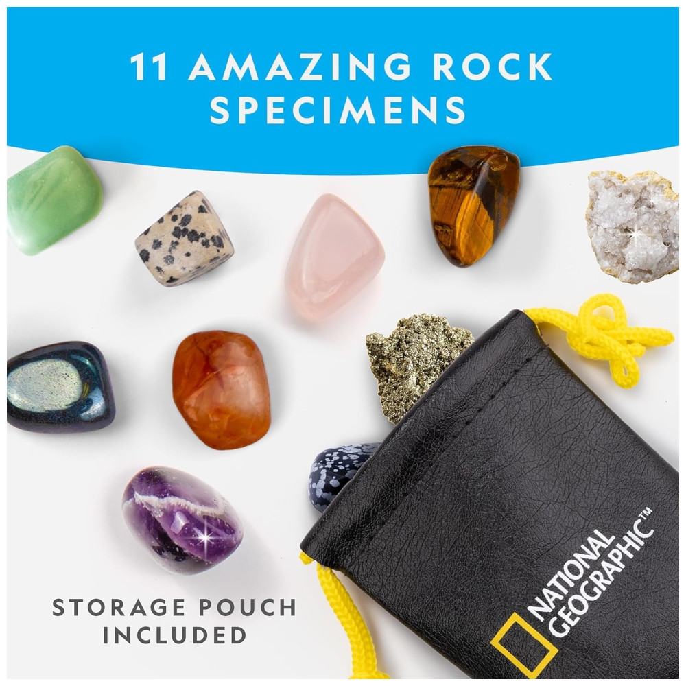 COLETE 11 AMOSTRAS IMPRESSIONANTES Os fósseis e pedras preciosas para crianças neste calendário do advento incluem cornalina, ametista chevron, obsidiana de floco de neve, gastrópode, geodo, olho de tigre e muito mais Uma bolsa de zenamento também está incluída para sua nova coleção.