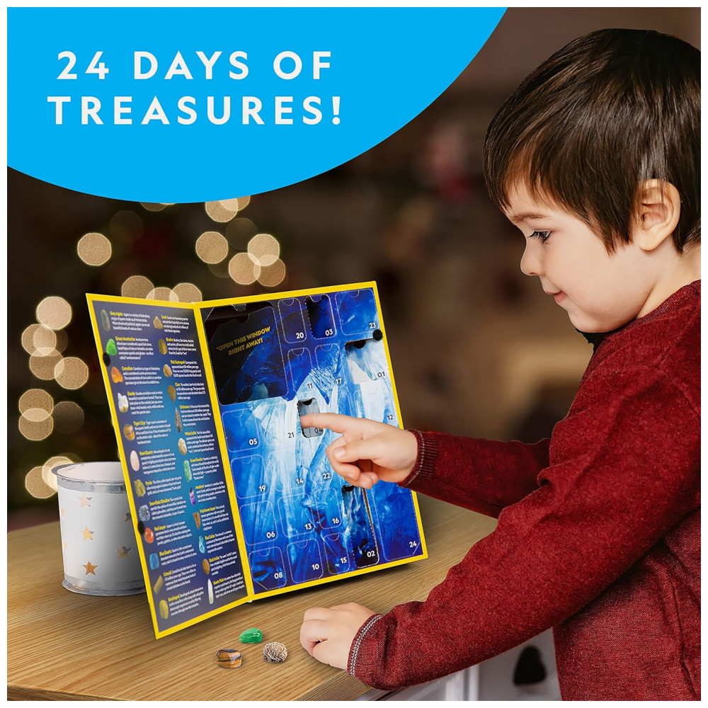 24 DIAS DE TESOUROS Todos os dias que antecedem o Natal, as crianças abrem um painel para revelar uma rocha especial, mineral, fóssil ou pedra preciosa Com este calendário de contagem regressiva de Natal, eles podem começar uma coleção de rock que eles vão desfrutar durante todo o ano, com saco de zenamento incluído