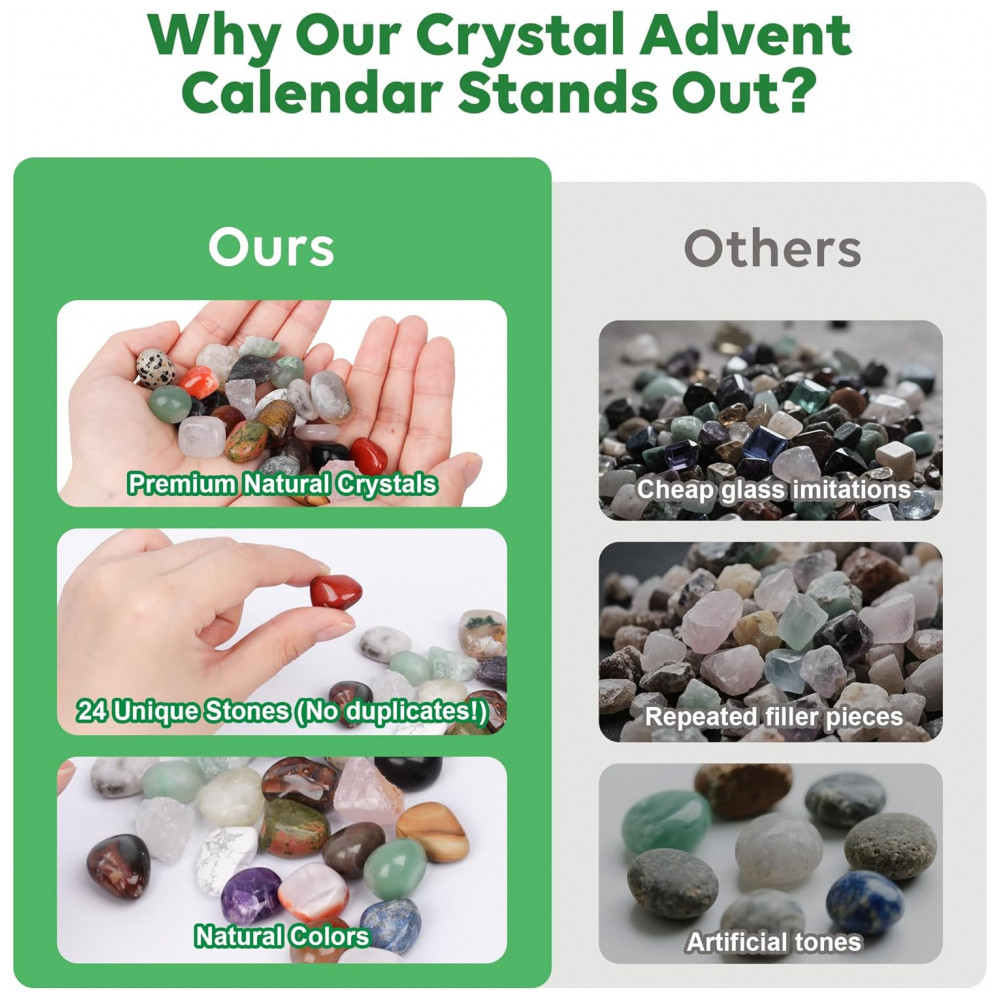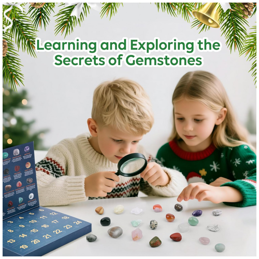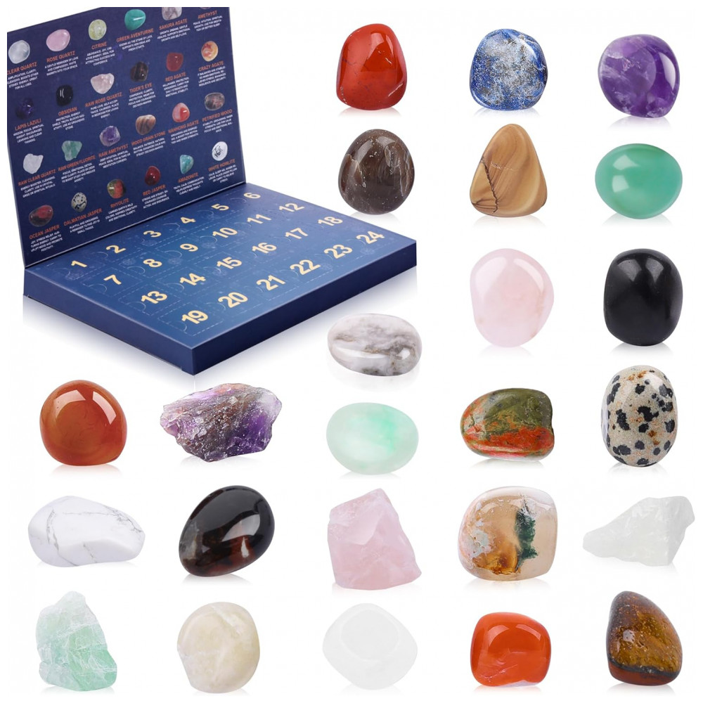 Calendário do Advento de Cristais 2025 para Crianças 24 Pedras de Cura de Gemas Naturais Calendário do Advento com Rochas e MineraisVVSBPL