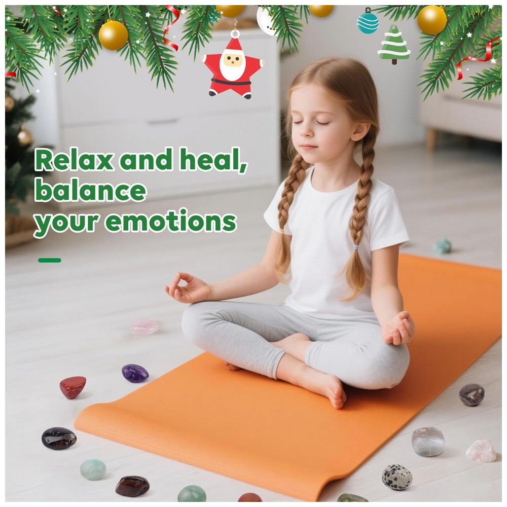 Celebre a contagem regressiva para o Natal com um mágico calendário do advento de 2025, apresentando 24 gemas e cristais de cura cuidadosamente selecionados. Cada dia revela uma pedra única, perfeita para crianças curiosas, iniciantes em cristais e amantes da natureza. Descubra uma mistura de pedras polidas e brutas, incluindo Madeira Petrificada, Quartzo Rosa, Ametista, Quartzo Transparente, Aventurina Verde, Olho de Tigre, Obsidiana, Amazonita e muito mais. Uma forma divertida de explorar a beleza dos tesouros da Terra. Projetado para despertar a curiosidade, este calendário do advento de gemas ensina crianças sobre geologia, minerais e energia dos cristais. Um instrumento de aprendizado prático que inspira mentes jovens por meio de atividades interativas e descobertas. Presente de Natal atencioso e perfeito para crianças, adolescentes e amantes de cristais de todas as idades. Ideal para presentear no Natal, festas de fim de ano, recompensas escolares ou como atividade diária relaxante em dezembro. Estimule a diversão e o aprendizado sem telas com este calendário de avento de cristais. Ótimo para salas de aula, aprendizado em casa ou momentos de união familiar. Apoia o interesse pela ciência e geologia, além de promover a atenção plena e a curiosidade.
