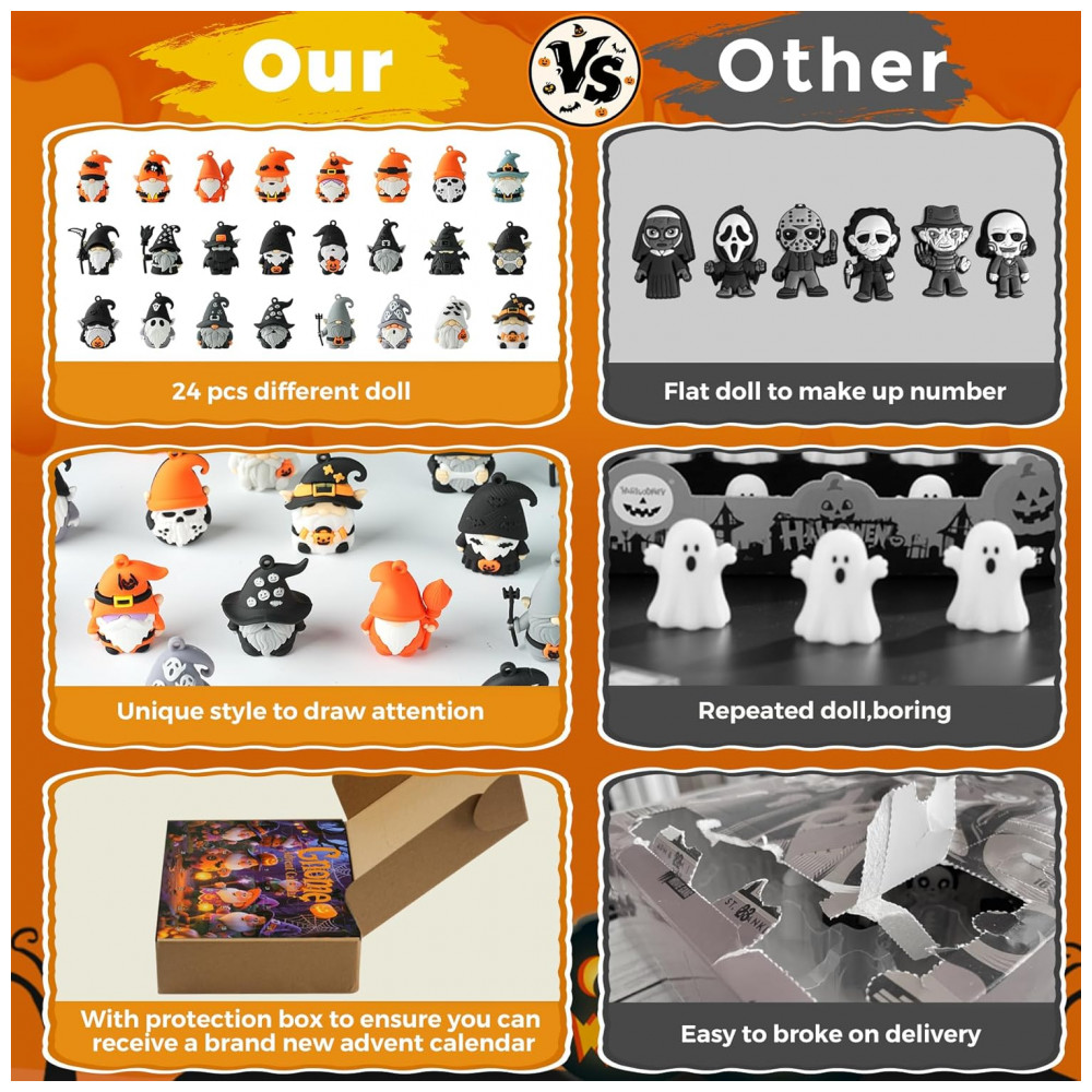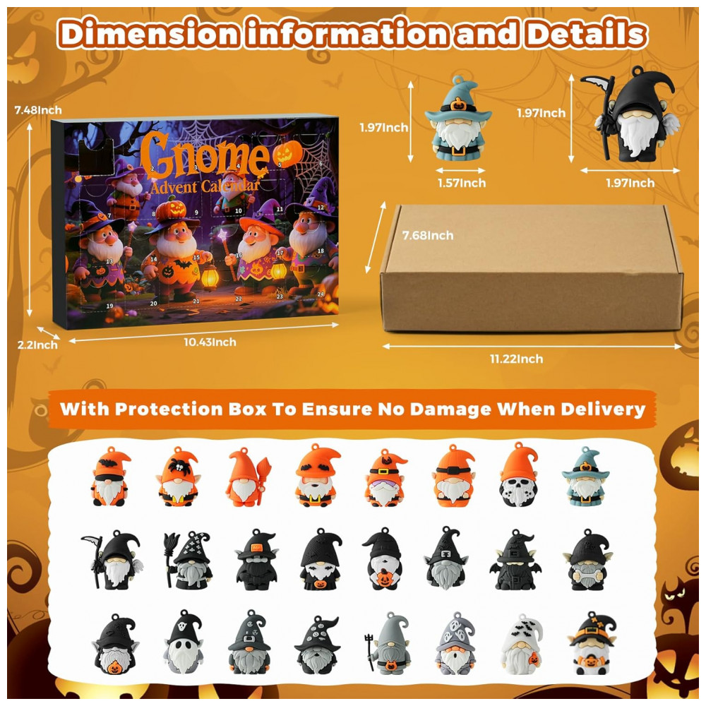 Celebre as festas com o Calendário do Advento de Gnomos 2025! Inicie a contagem regressiva para o Halloween e o Natal com nosso Calendário do Advento de 2025. Com 24 clássicas figuras de gnomos, cada dia traz uma nova surpresa festiva para crianças e adultos. Presente Perfeito para Todos! Encante seus entes queridos com nosso Calendário do Advento de Contagem Regressiva para o Halloween e Natal. Cada dia revela uma nova figura, adicionando emoção e alegria à temporada de festas para crianças, adultos, meninas e meninos. Uma caça ao tesouro para amantes de gnomos! Este Calendário de Contagem Regressiva para o Halloween está repleto de 24 figuras distintas e altamente detalhadas de gnomos. Descubra um novo personagem assustador a cada dia. A emoção da revelação torna cada manhã um evento. Exiba sua família de gnomos completa como uma deslumbrante decoração de Halloween e desfrute de uma aventura colecionável que dura o mês inteiro! Adição Decorativa Festiva! Aprimore suas decorações de feriados com o nosso Calendário de Contagem Regressiva para o Halloween de 2025. Seu design vibrante e figuras coloridas trazem o espírito do Halloween e do Natal para qualquer ambiente. Torne a temporada assustadora ainda mais especial com uma contagem regressiva cheia de magia e maravilha! Nosso Calendário do Advento de Gnomos 2025 apresenta 24 portas únicas, cada uma escondendo uma encantadora e colecionável figura de gnomo. A partir do primeiro dia de outubro, crie expectativa enquanto seus pequenos monstros descobrem um novo amigo gnomo peculiar todas as manhãs.