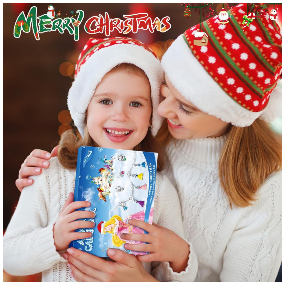 Contagem regressiva de 1º de dezembro até o Natal! Este calendário do advento é uma forma divertida e festiva para as crianças contarem os dias até o Natal. Deixe as meninas se vestirem como princesas para o Natal com este calendário. Torne as memórias de Natal ainda mais especiais com esta experiência única. Com este calendário do advento, cada dia se tornará mais emocionante. Design exclusivo para o Natal – Calendário do Advento com Conjunto de Presente que inclui 22 encantos de joias e 2 pulseiras. As meninas podem criar suas próprias pulseiras de joias com você. Cultive mais amor em família na temporada de festas. Joias de boa qualidade e fáceis de enfiar – Cada joia é feita de liga ambiental com banho de ouro branco, livre de níquel, chumbo e cádmio, hipoalergênico. Ao usá-las, promove beleza, saúde, boa sorte e cura. A pulseira possui um fecho de trava de barril e um sistema de rosqueamento inovador para que você possa parafusar esses brilhantes encantos na pulseira sem esforço. Presente especial de Natal – O calendário de encanto traz a felicidade e a alegria do Natal. Presenteie sua pequena, filha ou ente querido com este adorável conjunto de joias. Aproveite as surpresas enquanto ela conta os dias até o Natal! Garantia de satisfação de 100% – Sabemos que nada é mais importante do que a segurança de nossos jovens!
