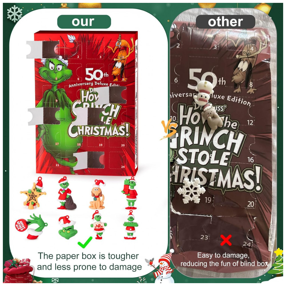 Celebre a temporada com o Calendário de Contagem Regressiva para o Natal de 2025! De colecionáveis adoráveis a surpresas encantadoras, o calendário do advento de Natal é um item essencial para suas decorações e presentes festivos. Divirta-se durante 24 dias com o Green Monster! Este Calendário do Advento de 2025 está repleto de 24 colecionáveis clássicos, adicionando um toque de alegria travessa à sua contagem regressiva de Natal. Apresentando 24 figuras de bonecos de Natal meticulosamente elaboradas, este Calendário de Contagem Regressiva para o Natal oferece figuras de alta qualidade perfeitas para adicionar um toque de magia às suas celebrações natalinas. Desvende a Magia do Natal! 24 dias, 24 surpresas! Faça a contagem regressiva para o Natal com os 24 colecionáveis do Green Monster. Seja fã do clássico ou apenas queira se divertir no feriado, este calendário é ideal para crianças, meninos, meninas e adultos. Desembrulhe um novo colecionável festivo a cada dia, trazendo alegria e empolgação para as crianças. A maneira perfeita de tornar este Natal inesquecível!