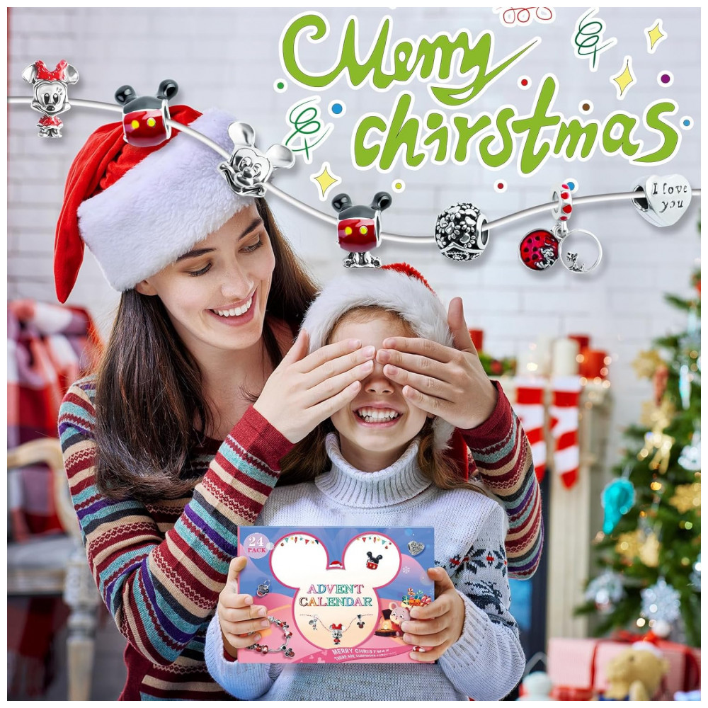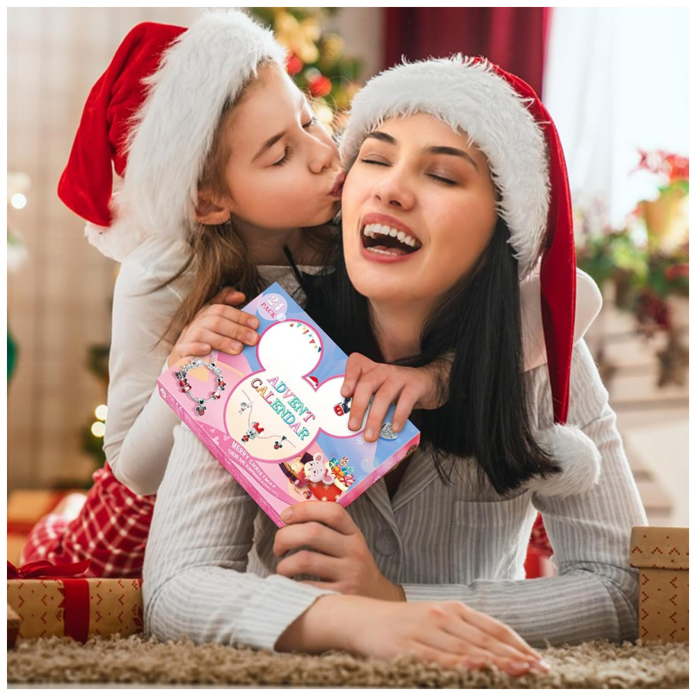 Calendário do Advento Natal 2025 para Meninas com Contagem Regressiva 24 Dias Pulseira DIY e Pingentes Festivos