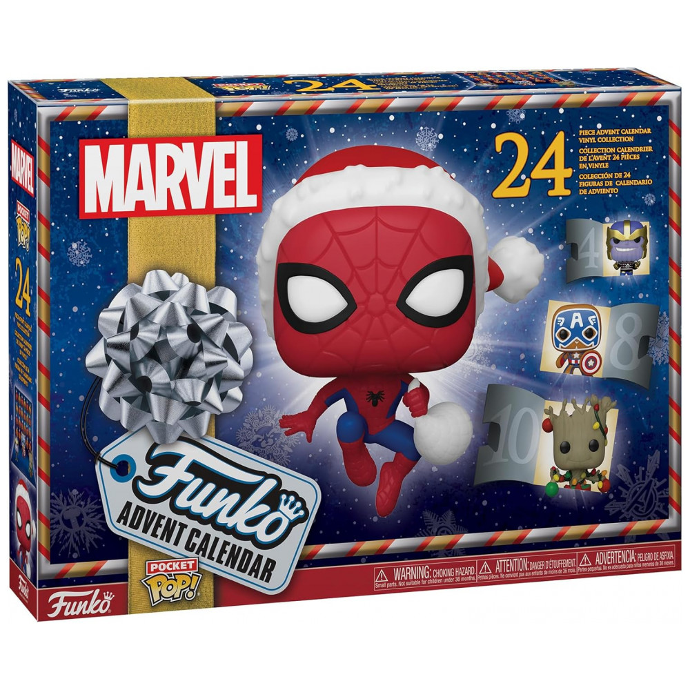 Eleve suas festas de fim de ano a novas alturas com o Calendário do Advento da Marvel Funko! O Homem-Aranha está chegando para entregar 24 exclusivos Funko Pocket Pops! enquanto você faz a contagem regressiva para suas festividades de inverno. Abra as portinhas para revelar alguns de seus personagens favoritos da Marvel vestidos com suas melhores roupas de Natal. Cada colecionável traz um toque festivo ao seu visual típico, tornando esses heróis e vilões uma adição super divertida à decoração natalina. Quem se unirá para celebrar com você? Os colecionáveis Pocket Pop! variam de altura dependendo do personagem, com altura máxima de aproximadamente 5,7 centímetros. Aproveite suas festas de fim de ano com o Calendário do Advento Marvel Funko! O Homem-Aranha está chegando para entregar 24 exclusivos Funko Pocket Pops! enquanto você faz a contagem regressiva para suas festividades de inverno. Abra as portinhas para revelar alguns de seus personagens favoritos da Marvel vestidos com suas melhores roupas de Natal.