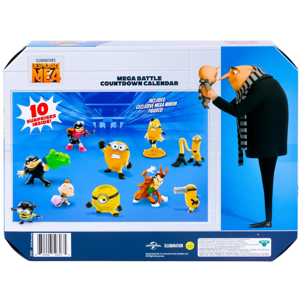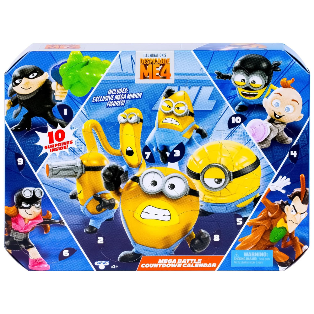 As crianças vão adorar o Calendário de Contagem Regressiva da Mega Batalha de Meu Malvado Favorito 4. Com 10 janelas para abrir, há muita diversão esperando por elas. Cada janela revela uma figura colecionável de 5,8 cm, incluindo figuras exclusivas do Mega Minion. Além disso, o calendário traz outras 5 figuras de personagens do filme para colecionar.