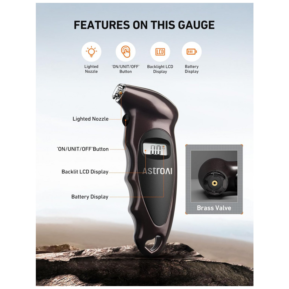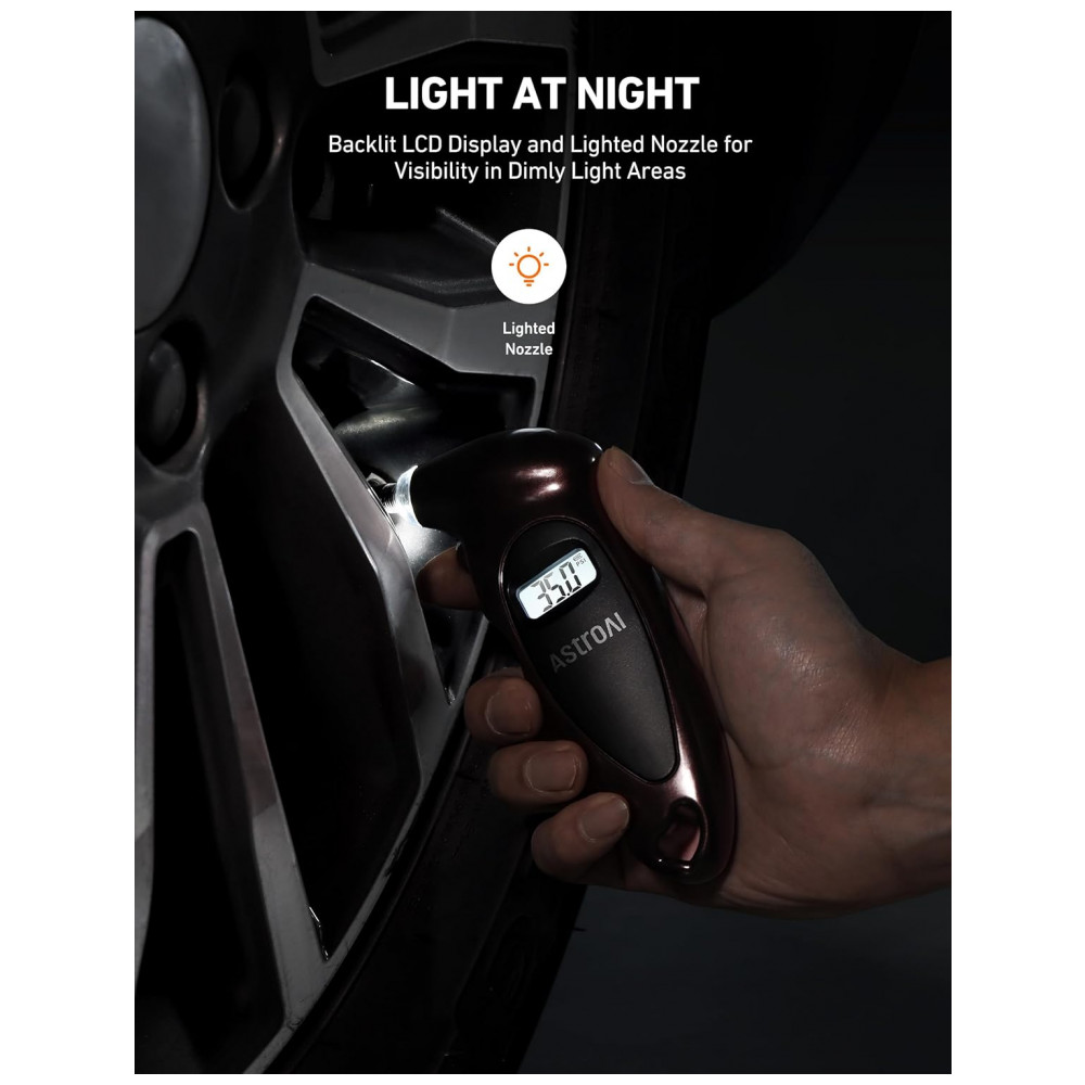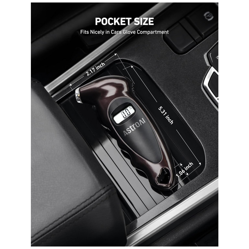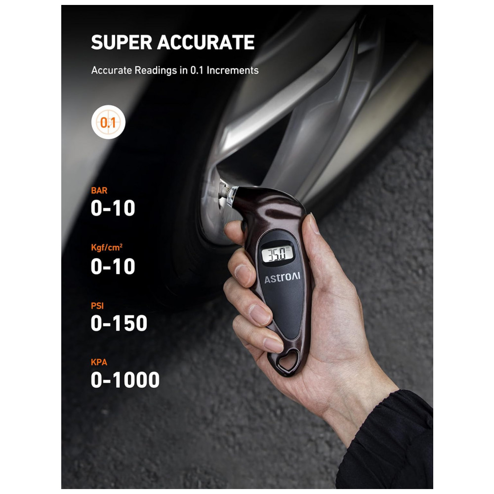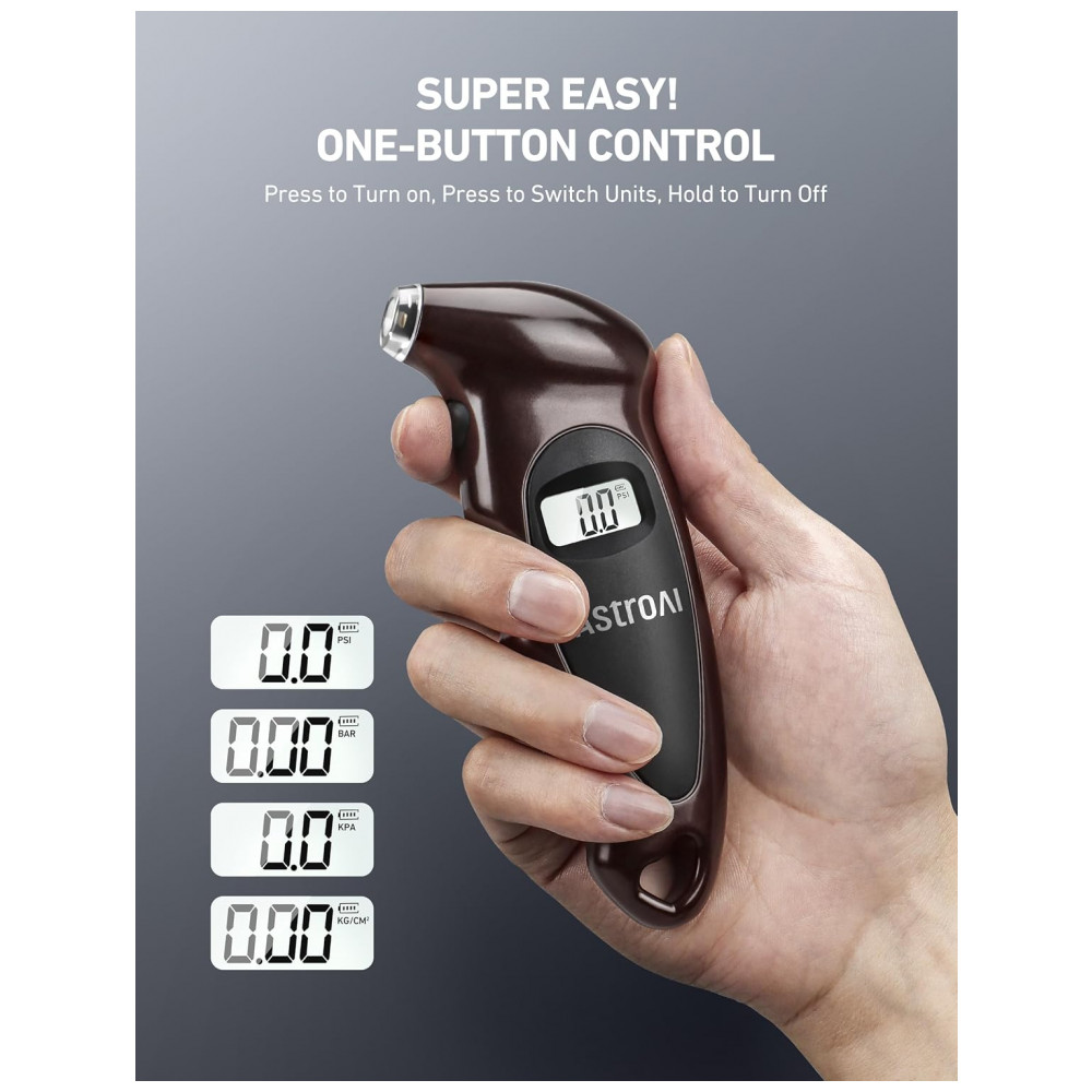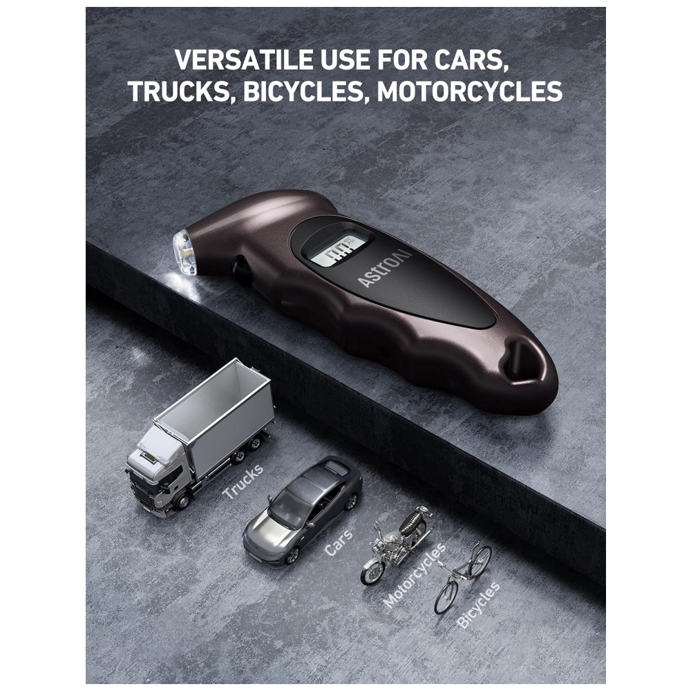 Calibrador Digital de Pressão de Pneus AstroAI com Bateria AAA Substituível 150 PSI 4 Configurações para Carro Caminhão Bicicleta Tela LCD Retroil