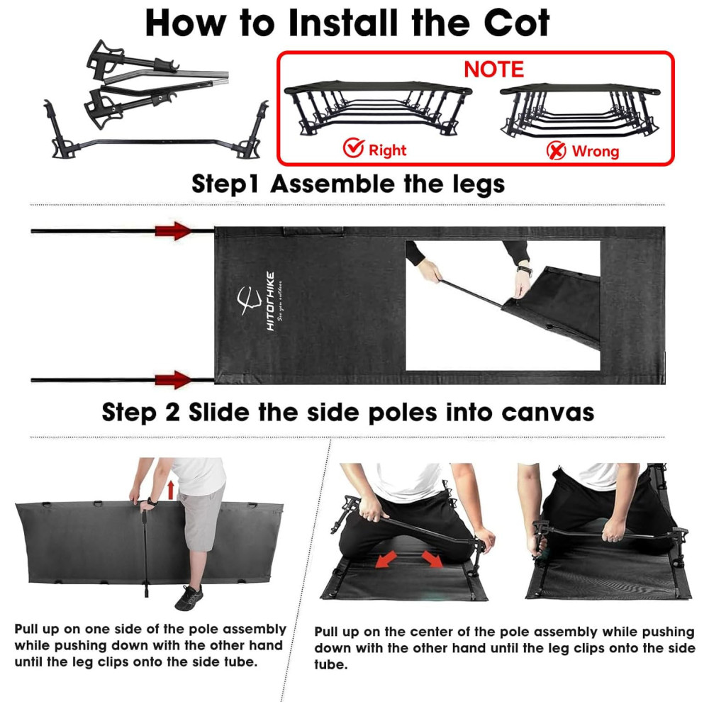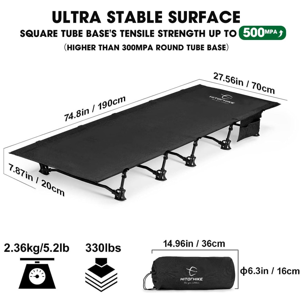Cama Acampamento Camping Dobrável Portátil até 136 kg HITORHIKE Preto