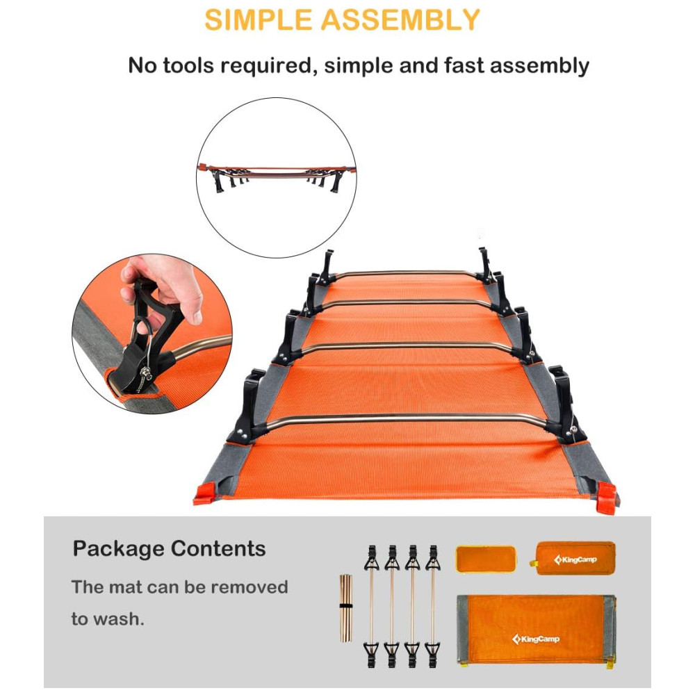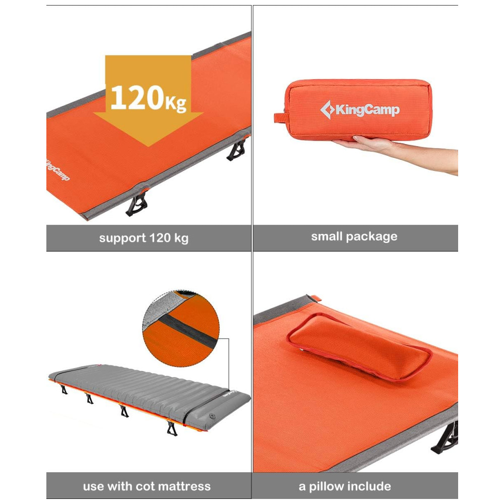 Cama Acampamento Camping Dobrável Portátil até 150 kg KINGCAMP Laranja