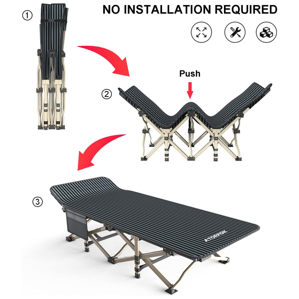 Cama Acampamento Camping Dobrável Portátil ATORPOK Preto