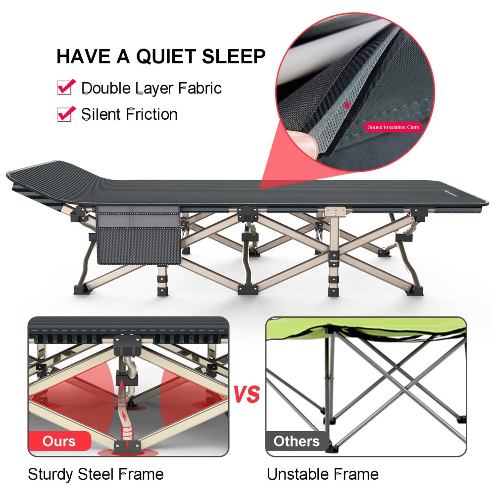 Dobrável e portátil O berço portátil pode ser dobrado e colocado em uma bolsa de transporte, facilitando o transporte para o seu acampamento e perfeito para descanso ao ar livre.