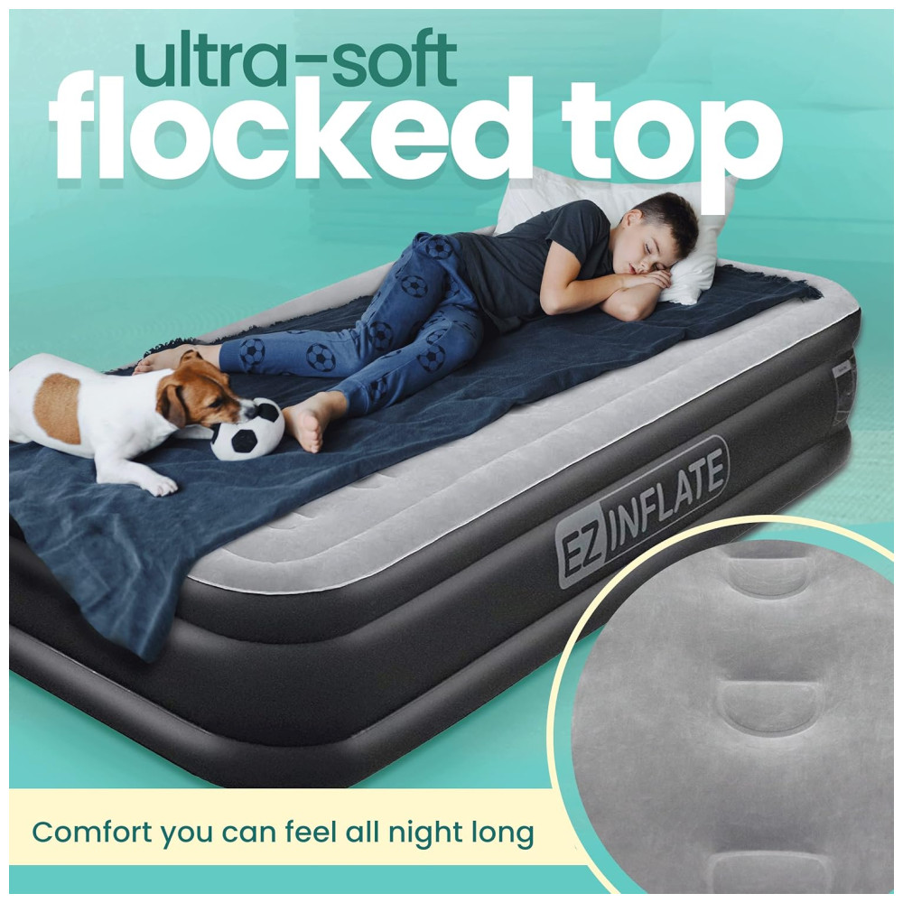 Cama Colchão Inflável Cama Bomba de Ar Embutida Luxo Duplo Altura 40 de Altura EZ INFLATE Preto